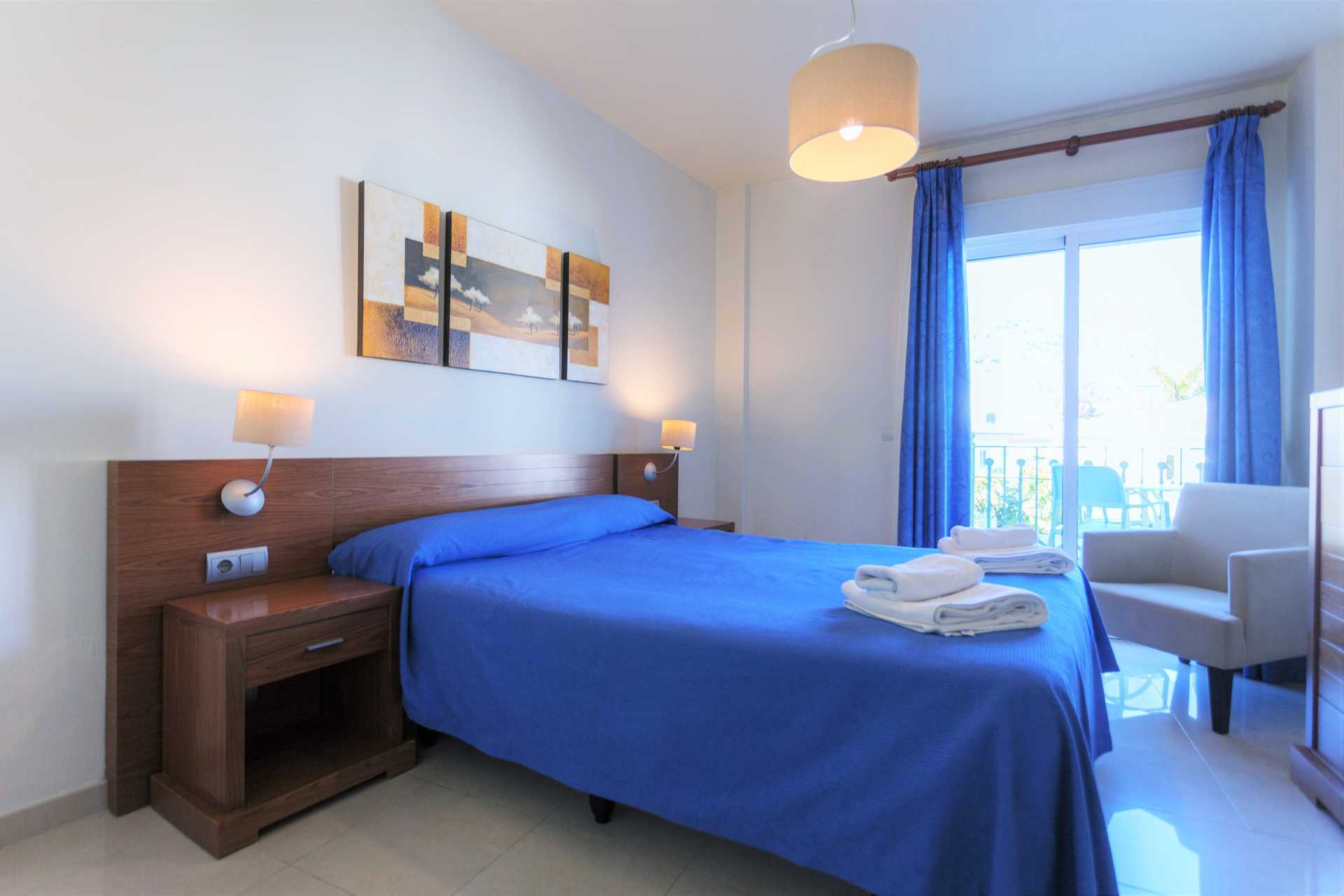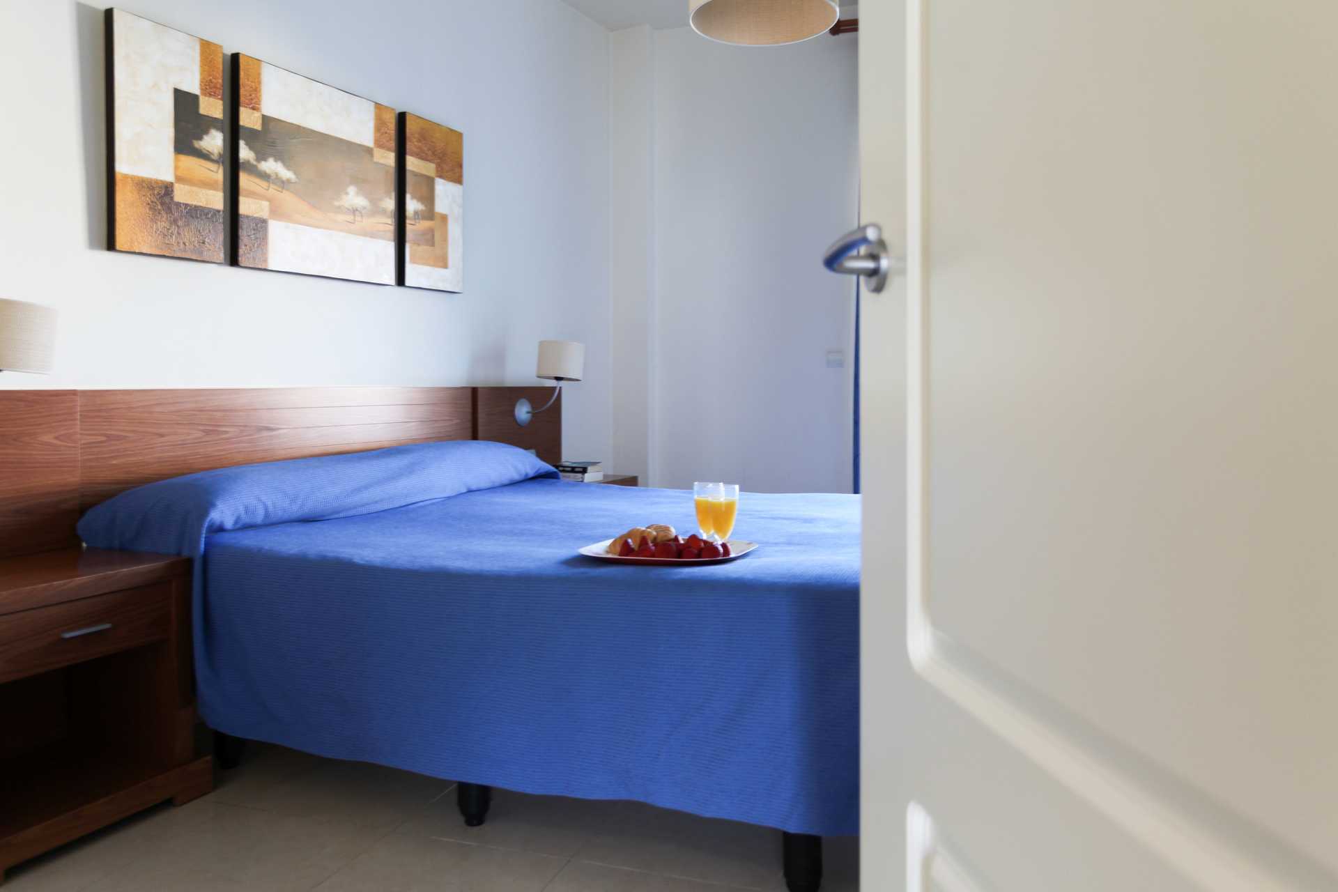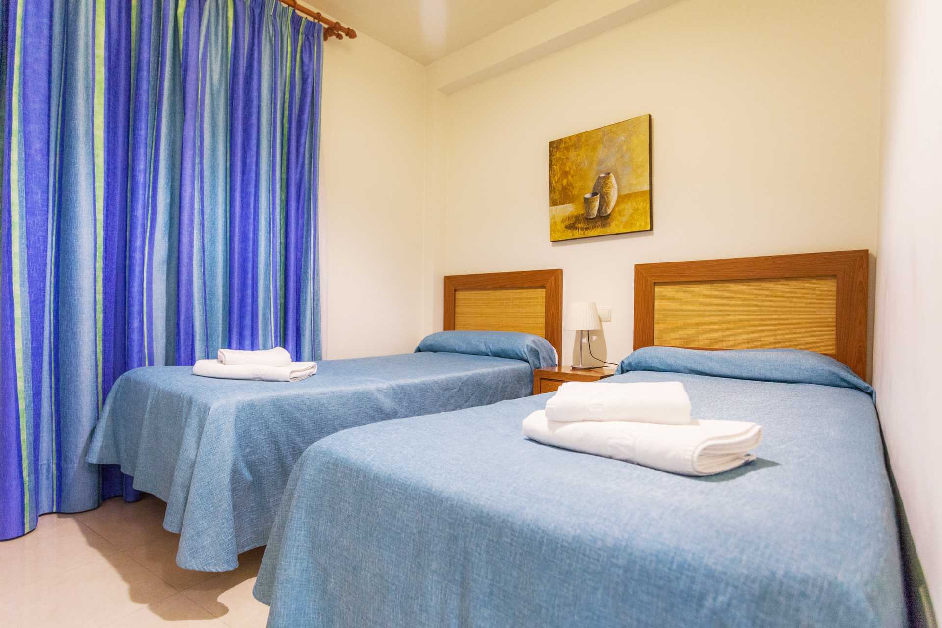 Treromsleilighet med balkong eller terrasse. To soverom og en stue med minikjøkken. To enkeltsenger i det ene soverommet og en dobbeltseng i det andre soverommet. Mulig med ekstrasenger i sovesofa. Minikjøkken med kokeplater, kjøleskap, mikrobølgeovn, vannkoker, kaffetrakter samt oppvaskmaskin og enkelt kjøkkenutstyr. Wifi og luftkondisjonering er inkludert. Safe mot avgift. TV. Strykejern og strykebrett. Vaskemaskin. Hårføner. Badekar med dusj og wc. Rengjøring 7 ggr/uke.
