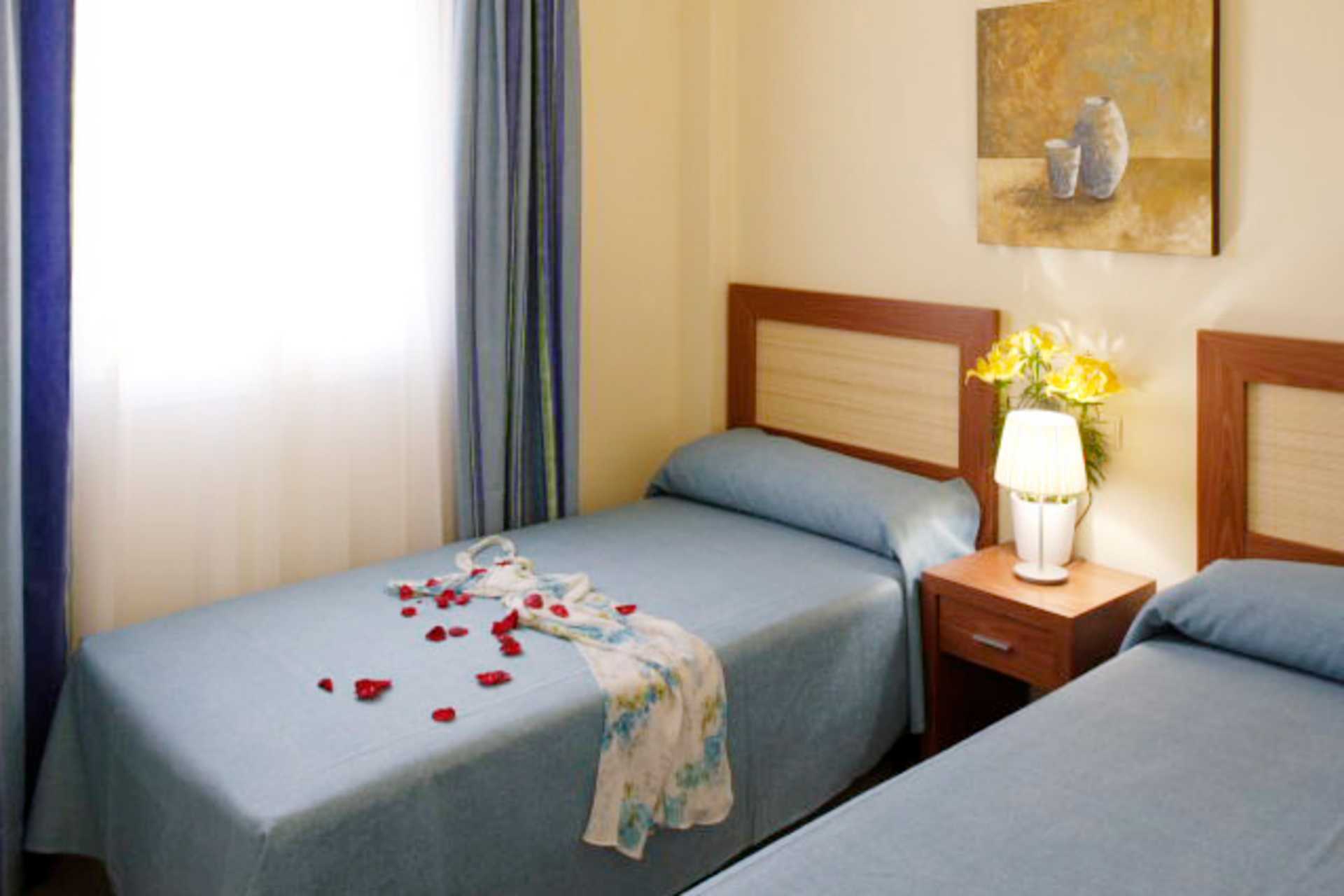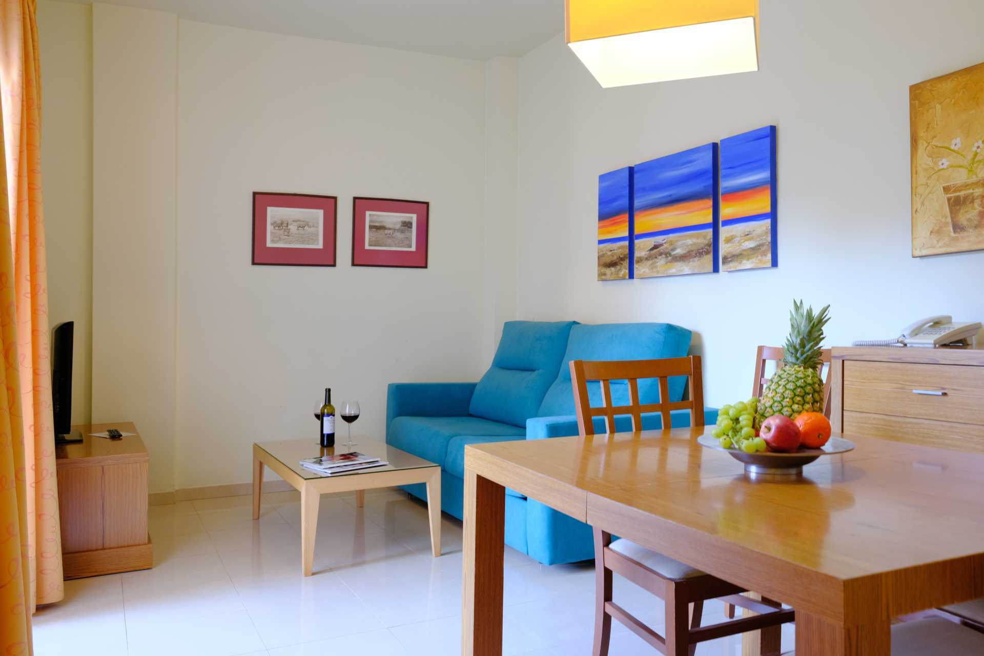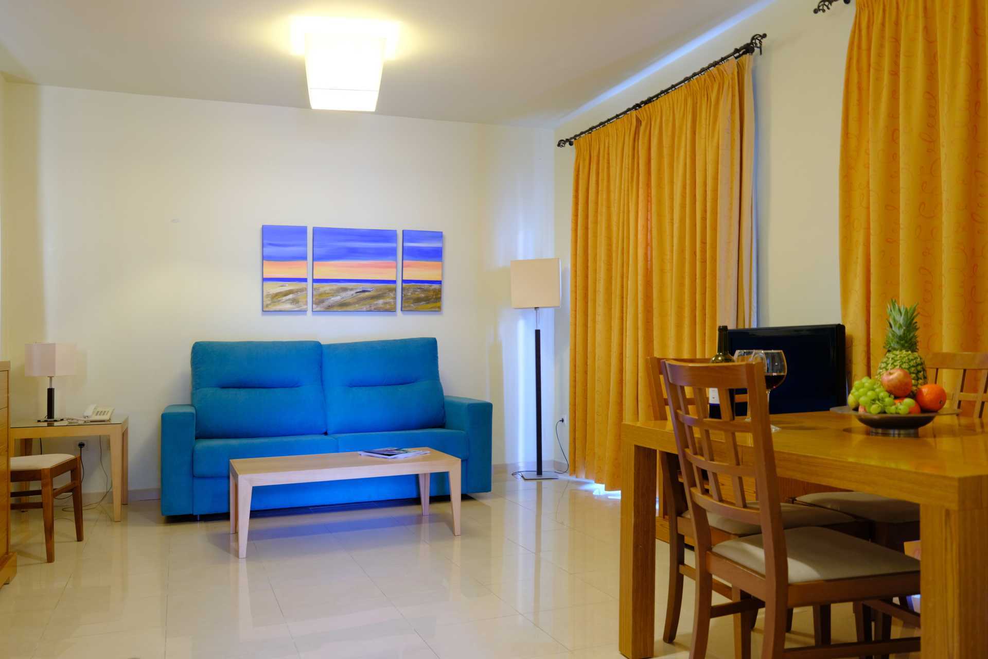 Treromsleilighet med balkong eller terrasse. To soverom og en stue med minikjøkken. To enkeltsenger i det ene soverommet og en dobbeltseng i det andre soverommet. Mulig med ekstrasenger i sovesofa. Minikjøkken med kokeplater, kjøleskap, mikrobølgeovn, vannkoker, kaffetrakter samt oppvaskmaskin og enkelt kjøkkenutstyr. Wifi og luftkondisjonering er inkludert. Safe mot avgift. TV. Strykejern og strykebrett. Vaskemaskin. Hårføner. Badekar med dusj og wc. Rengjøring 7 ggr/uke.