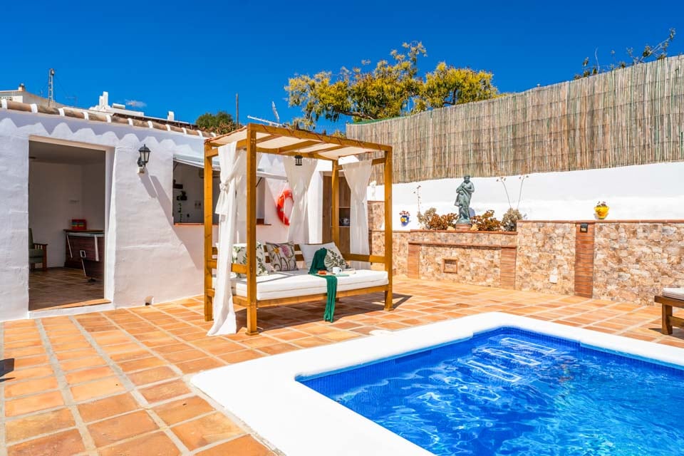 Vannet i ditt private basseng er virkelig din egen personlige oase under den berømte spanske solen. Finn litt ro på sørkysten mens du tar en dukkert i vannet, enten det er med en beroligende svømmetur om morgenen eller et forfriskende dukkert under ettermiddagssolen. Etter et bad i bassenget kan du sole deg med en deilig seng på solsengene ved bassengkanten. Unn deg en avslappende stund på utendørs dagseng og føl deg deilig og oppfrisket etter å ha brukt dusjen ved bassengkanten for å kjøle deg ned.
