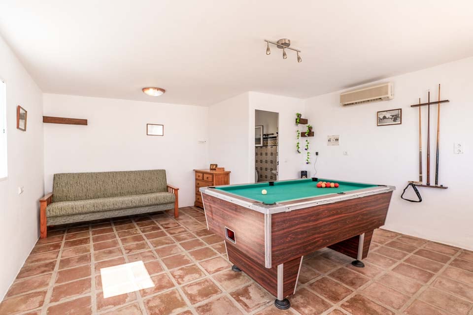 Tradisjonelt innredet og designet med røttene til denne vakre regionen i tankene, er innsiden av denne villaen utmerket for en avslappende tid ute i solen. Finn timevis med underholdning med biljardbordet, perfekt for å bevise én gang for alle hvem som er best med en kø. Etter å ha vunnet en eller to seire, kan du slappe av i de komfortable sofaene i den koselige stuen, eller ta turen opp til de sjarmerende soverommene før du tar deg en lur i de myke sengene. Hvis en god natts søvn er det du leter etter, finner du det her.