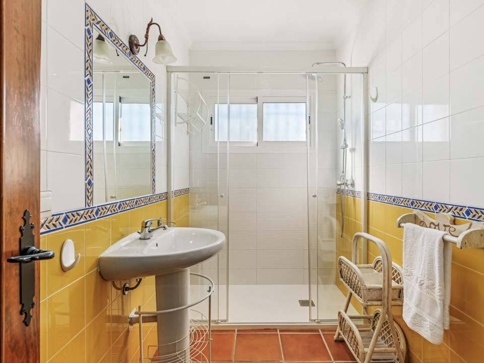 Vær oppmerksom på at denne villaen ligger i et kupert/fjellrikt område. For å komme til villaen er det en 205 cm bred sti sammen med tre trinn. Inngangsdøren har en bredde på 105 cm, mens døren til terrassen er 120 cm bred. Terrassen er en blanding av gress og fliser. Terrassen er stort sett flat med et lite trinn mellom overflatene. Dette kan sees på bildene. Bassenget har trinntilgang, mens det er en hevet kant rundt bassenget. Fra første etasje er det en utvendig trapp til bassengområdet. Innvendig har alle soverommene en dørbredde på 70 cm, mens alle badene har en dørbredde på 60 cm. Døren inn til kjøkken/spisestue er 70 cm bred, og døren inn til stuen er 120 cm bred. *Vær oppmerksom på at selv om vi har gjort vårt ytterste for å sikre at informasjonen som gis er nøyaktig, kan det forekomme feil. Hvis du trenger mer spesifikk informasjon om villaen, ikke nøl med å kontakte oss.