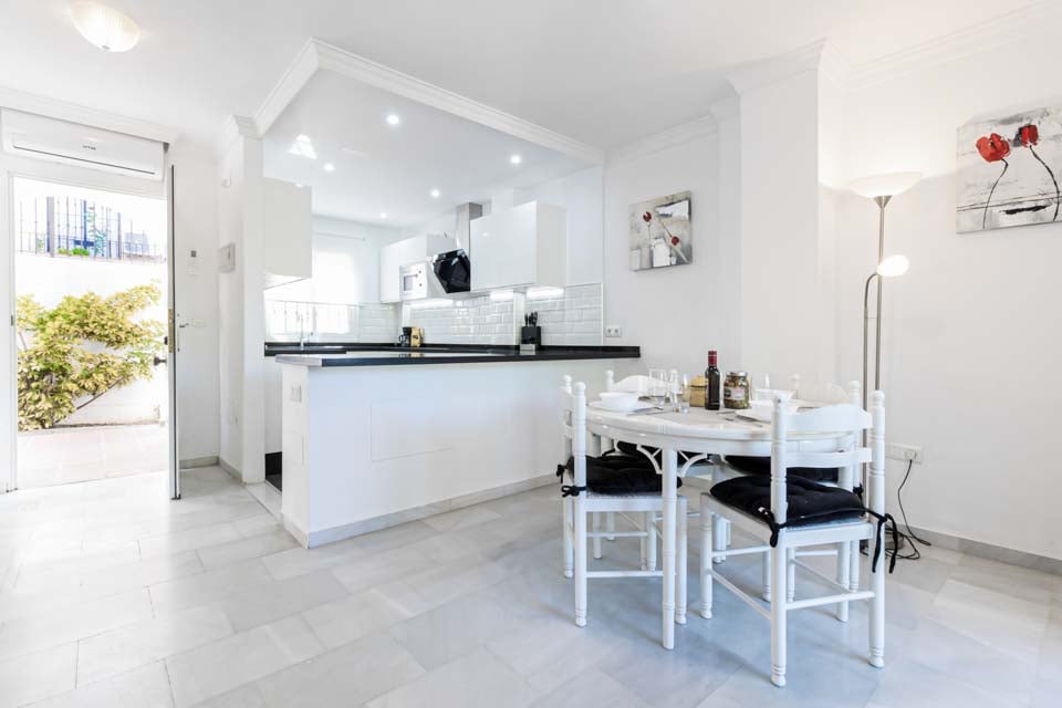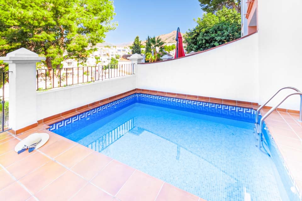 Denne vakre villaen i rekkehusstil med 3 etasjer i Nerja tilbyr en balanse mellom komfort og bekvemmelighet. Villaen har tre soverom med klimaanlegg, som gir et kjølig og avslappende tilfluktssted etter en dag med utforsking av området. Det åpne kjøkkenet og stuen skaper en romslig og innbydende atmosfære, ideell for både avslapning og underholdning med familie eller venner.