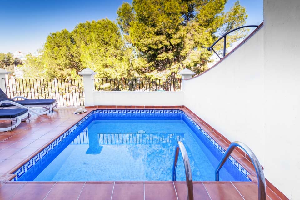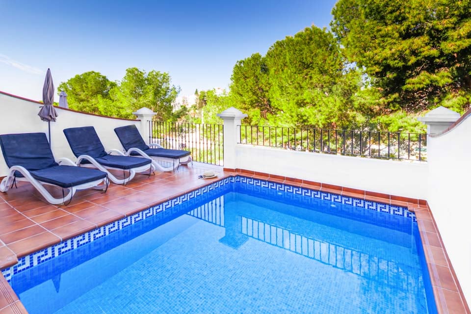 Villaen har også et privat oppvarmet basseng på en øvre terrasse, som kan nås via soverommene, slik at du kan ta en forfriskende dukkert når du måtte ønske det. Bassenget kan varmes opp mot et pristillegg, noe som sikrer komfort hele året.
