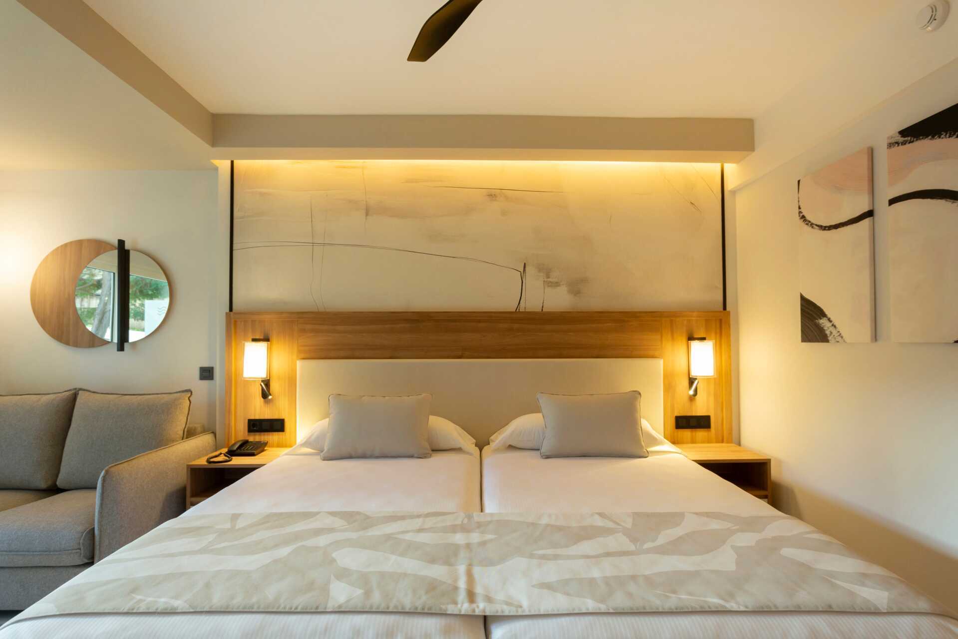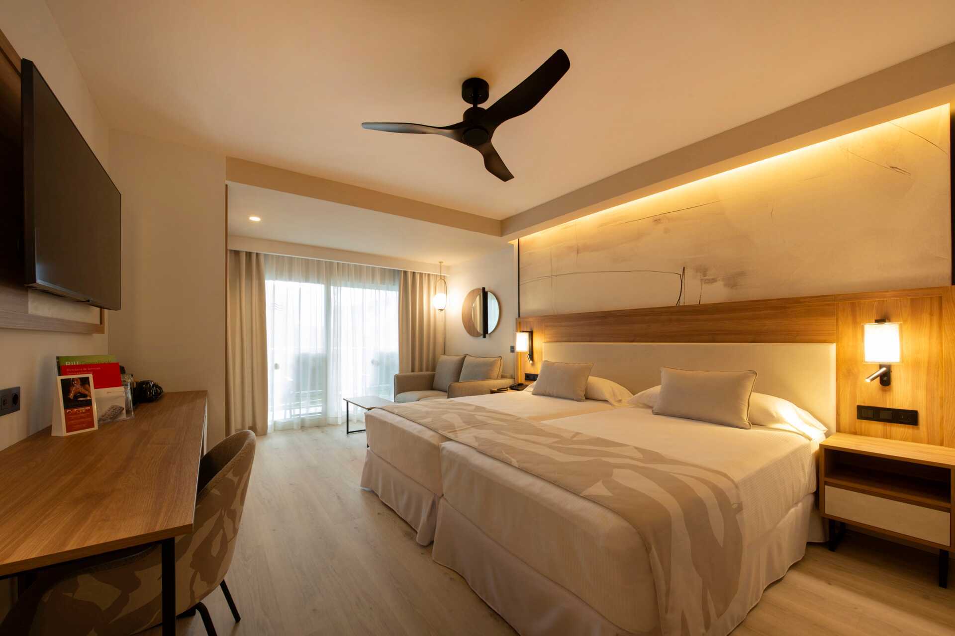 Dobbeltrom med balkong eller terrasse, noen med begrenset havutsikt. En dobbeltseng eller to enkeltsenger. Wifi og luftkondisjonering inkludert. Safe mot avgift. Takvifte. Minibar. Vannkoker. TV. Hårføner. Dusj og wc. Rengjøring 7 ggr/uke.