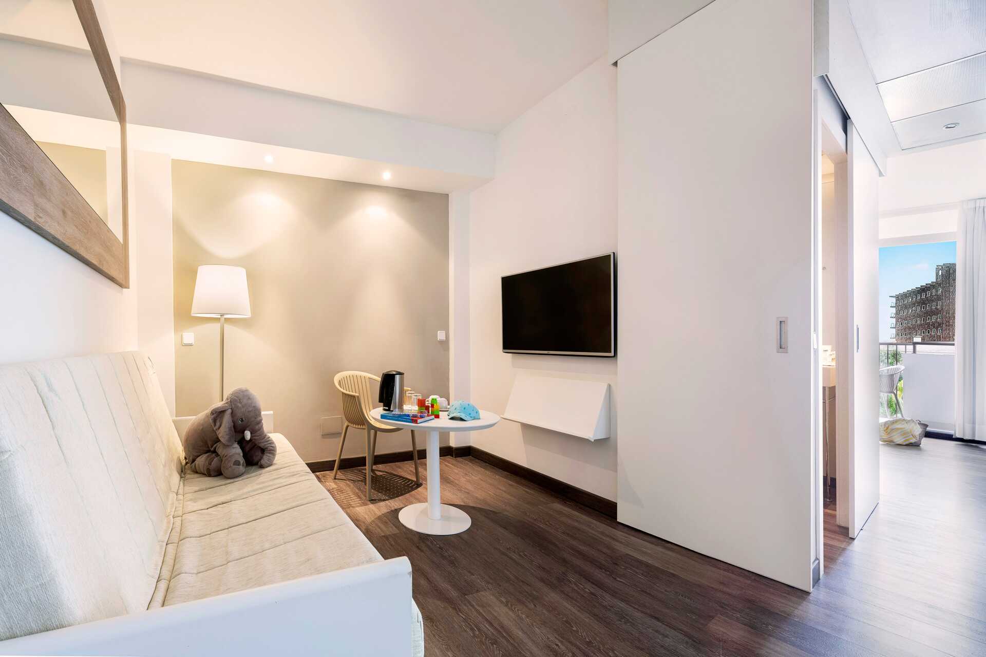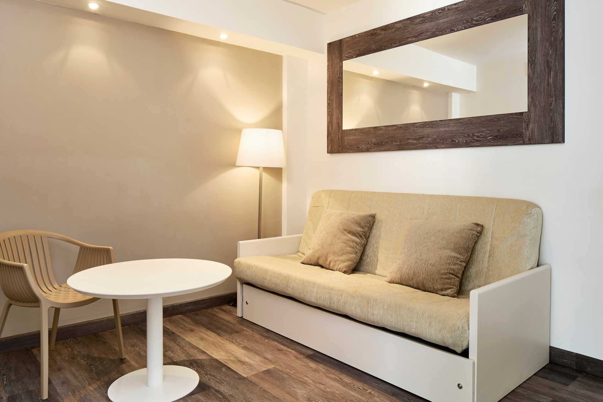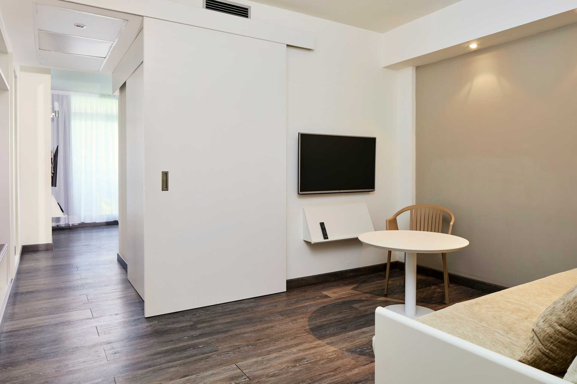Juniorsuite med balkong og bassengutsikt. En dobbeltseng eller to enkeltsenger. Mulig med ekstraseng i feltseng. Wifi og luftkondisjonering er inkludert. Safe mot avgift. Kjøleskap. TV. Dusj og wc. Rengjøring 5 ggr/uke.