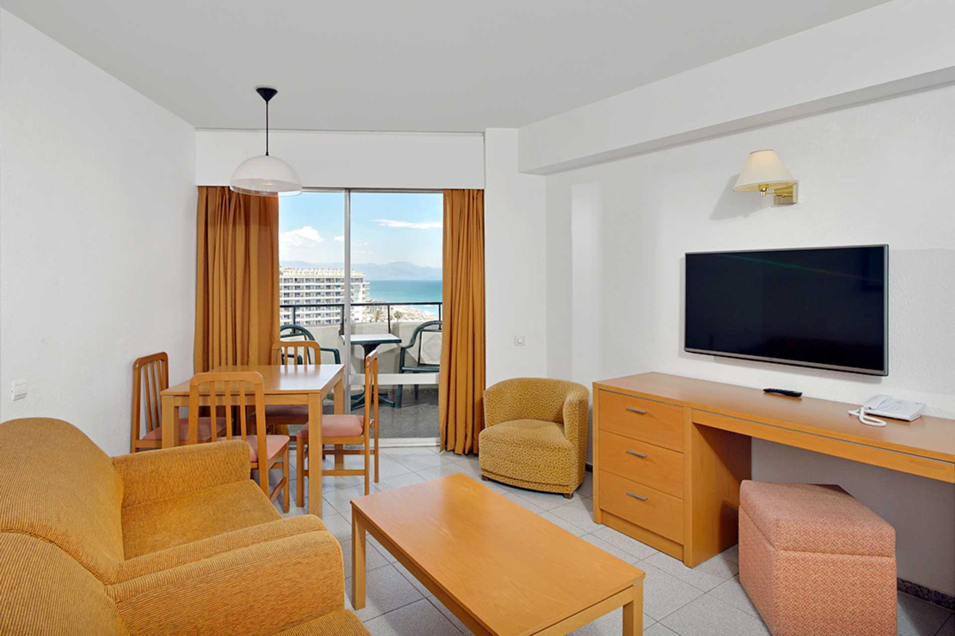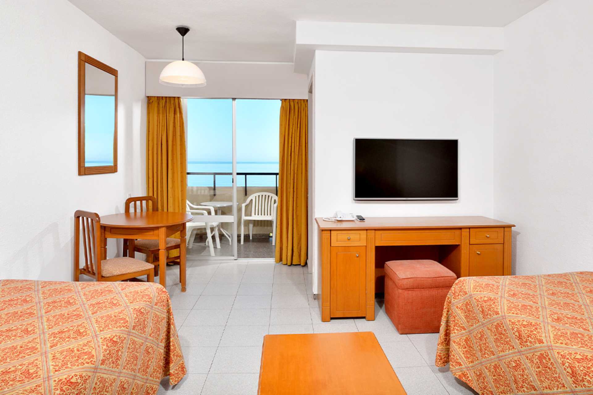 Toromsleilighet med balkong, noen med havutsikt. Soverom og kombinert stue med kjøkkenkrok. To enkeltsenger. Mulig med en ekstraseng i sovesofa. Minikjøkken med kjøleskap, kokeplate, vannkoker og enkelt kjøkkenutstyr. Wifi og luftkondisjonering inkludert. Safe mot avgift. TV. Dusj og wc. Rengjøring 3 ggr/uke.