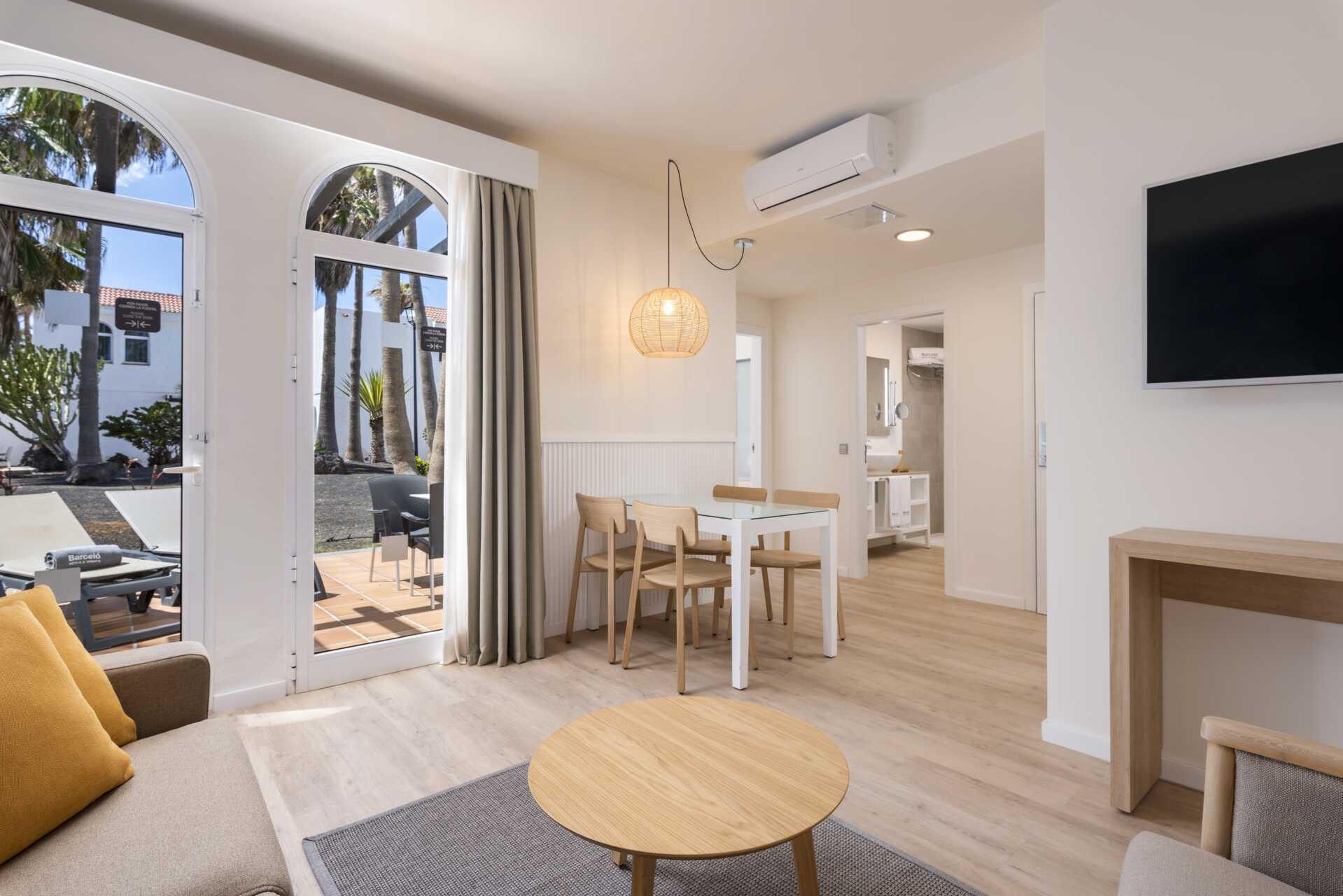 Toromsleiligheter som ligger i bungalowbygninger er spredt på området. Balkong eller terrasse, noen leiligheter har to terrasser. Leilighetene har ulik planløsning. Et soverom og en stue med minikjøkken. En dobbeltseng eller to enkeltsenger. Mulig med ekstrasenger i sovesofa. Minikjøkken med kjøleskap, kokeplater, mikrobølgeovn, vannkoker og enkelt kjøkkenutstyr. TV. Wifi og luftkondisjonering inkludert. Safe mot avgift. Hårføner. Badekar eller dusj samt wc. Rengjøring 7 ggr/uke.