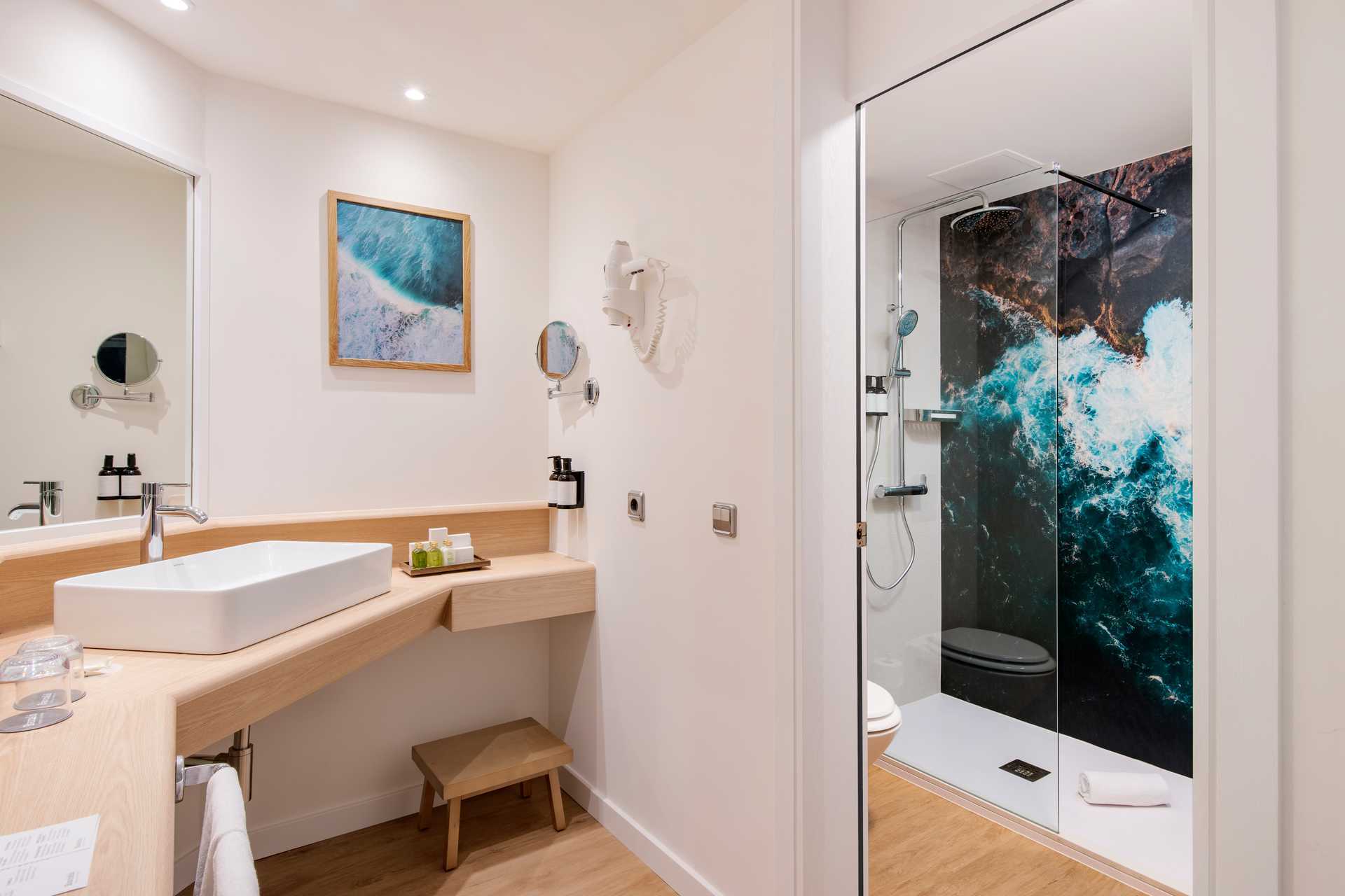 Deluxerom med balkong eller terrasse, noen med havutsikt. En dobbeltseng eller to enkeltsenger. Putemeny. Mulig med en ekstraseng i sovesofa. Wifi, luftkondisjonering og safe inkludert. Minibar mot avgift. Nespresso kaffemaskin. TV. Badekåper og tøfler Hårføner. Bad, som er delvis åpent mot rommet, med separat dusj og wc. Rengjøring 7 ggr/uke.