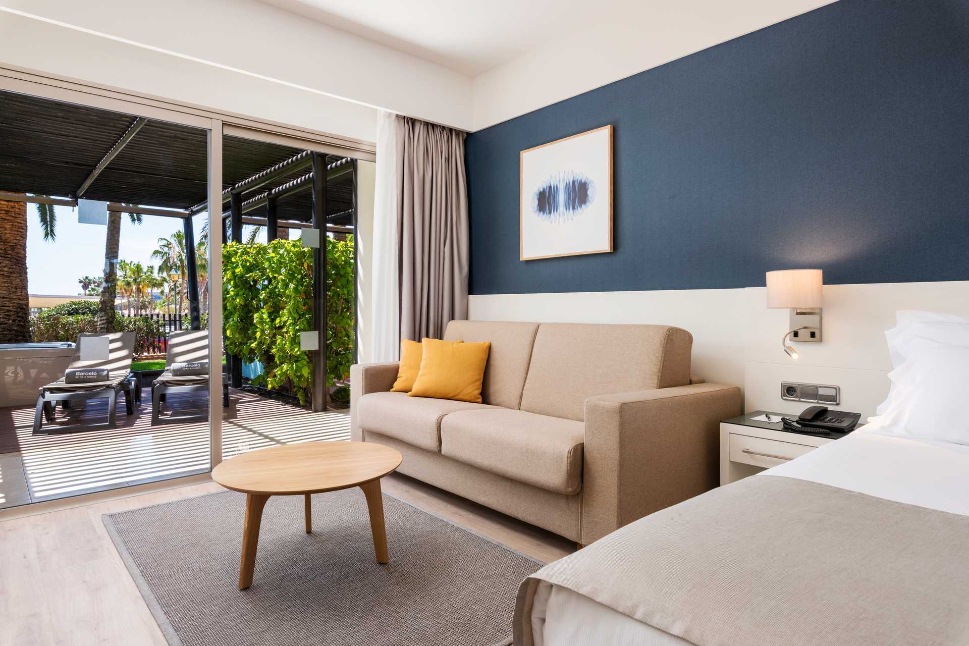 Deluxerom med privat jacuzzi på markterrasse. Terrassen har tak som solskjerming og solsenger. En dobbeltseng eller to enkeltsenger. Putemeny. Mulig med ekstrasenger i sovesofa. Wifi, luftkondisjonering og safe inkludert. Minibar mot avgift. Vannkoker samt kaffe og te. TV. Badekåper og tøfler Hårføner. Bad, som er delvis åpent mot rommet, med separat dusj og wc. Rengjøring 7 ggr/uke.