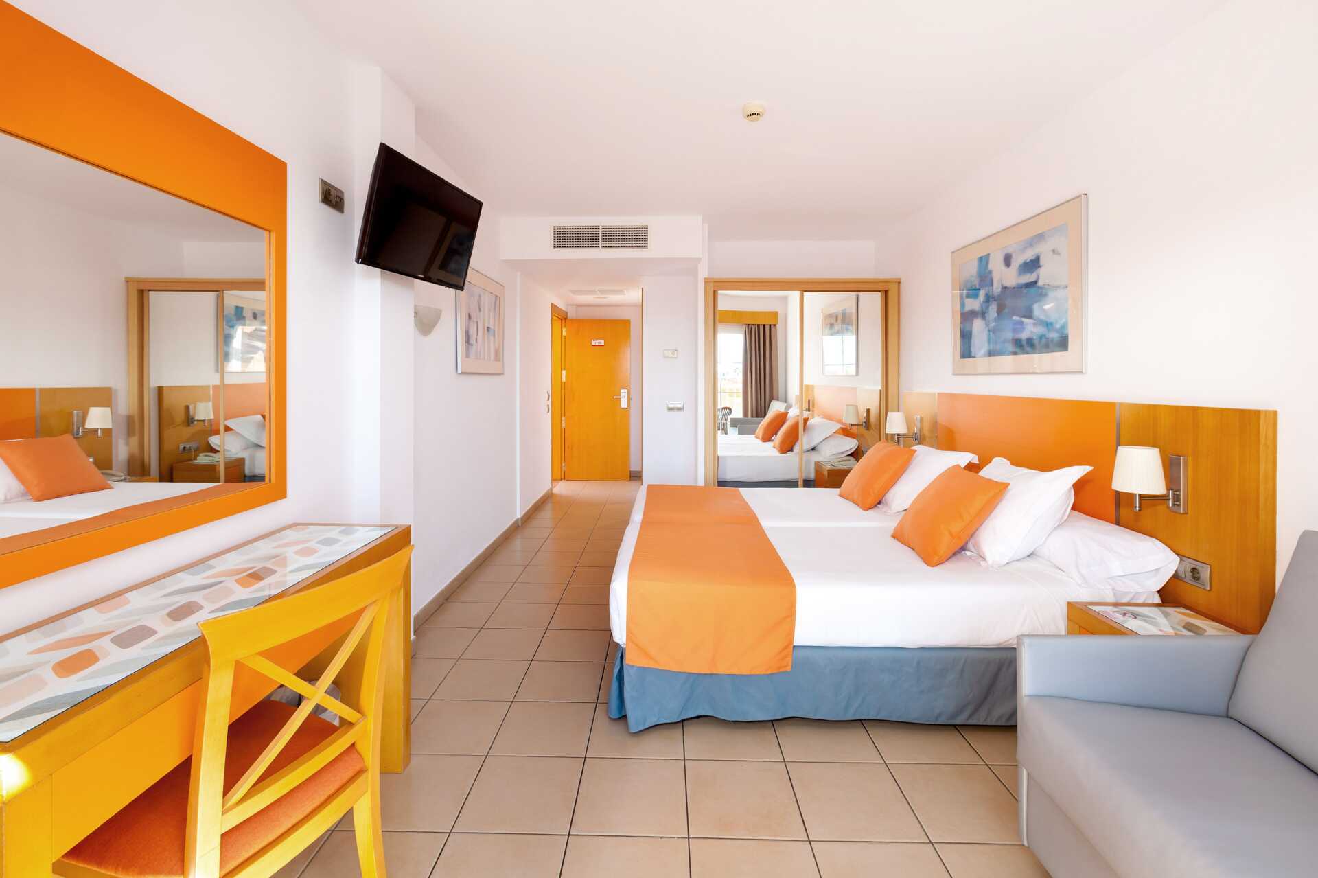 Familierom med balkong eller terrasse. To enkeltsenger. Mulig med ekstrasenger i sovesofa. WiFi (oppkobling og hastighet varierer) og klimaanlegg er inkludert. Safe mot avgift. TV. Fjernkontrollen til TV-en kan hentes i resepsjonen mot depositum. Hårføner. Badekar eller dusj samt wc. Rengjøring 5 ggr/uke.