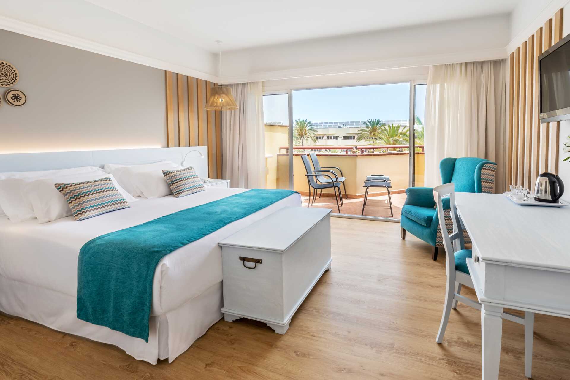 Dobbeltrom med balkong eller terrasse, noen med begrenset havutsikt og noen med bassengutsikt. To enkeltsenger. Wifi og luftkondisjonering inkludert. Safe mot avgift. Kjøleskap. Vannkoker samt kaffe og te. TV. Hårføner. Baderom med dusj og wc. Rengjøring 7 ggr/uke.