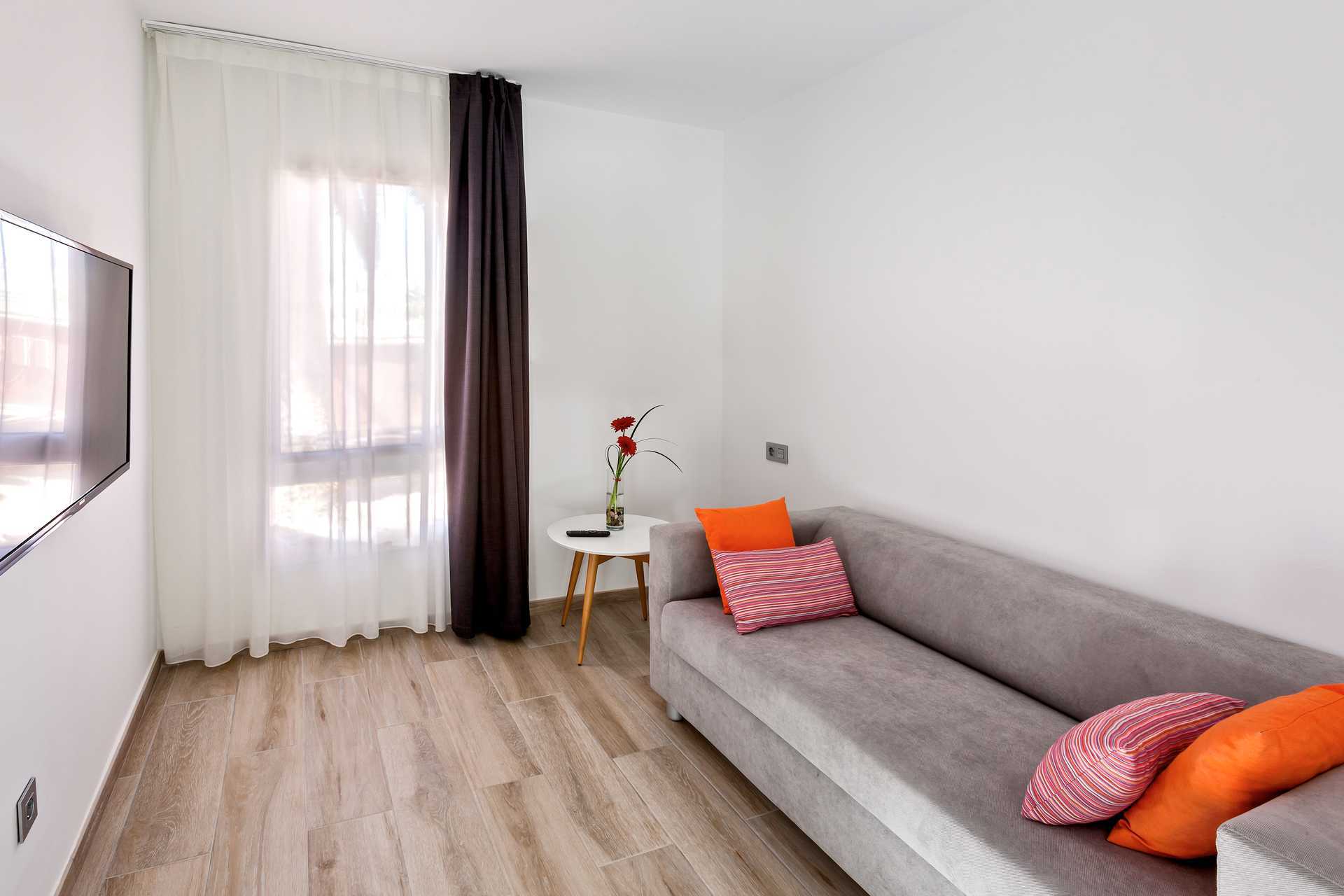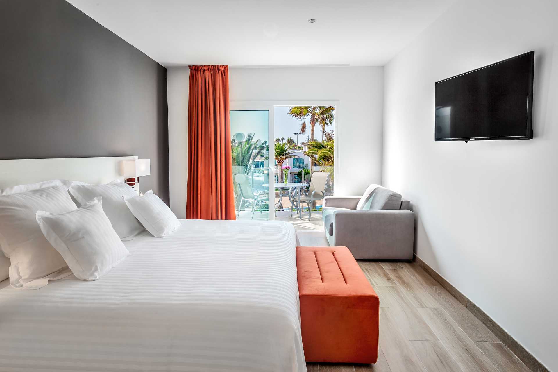 Suite med markterrasse, balkong eller terrasse, noen balkonger og terrasser har utsikt over bassenget. Suitene består av en soveromsdel og en stuedel uten dør mellom delene. To enkeltsenger. Mulig med ekstrasenger i sovesofa. Wifi og luftkondisjonering er inkludert. Safe mot avgift. Kjøleskap. Vannkoker samt kaffe og te. Hårføner. Dusj og wc. Rengjøring 7 ggr/uke. Barn under 2 år regnes inn i maksantallet i rommet. På dette hotellet regnes voksne fra fylte 13 år.