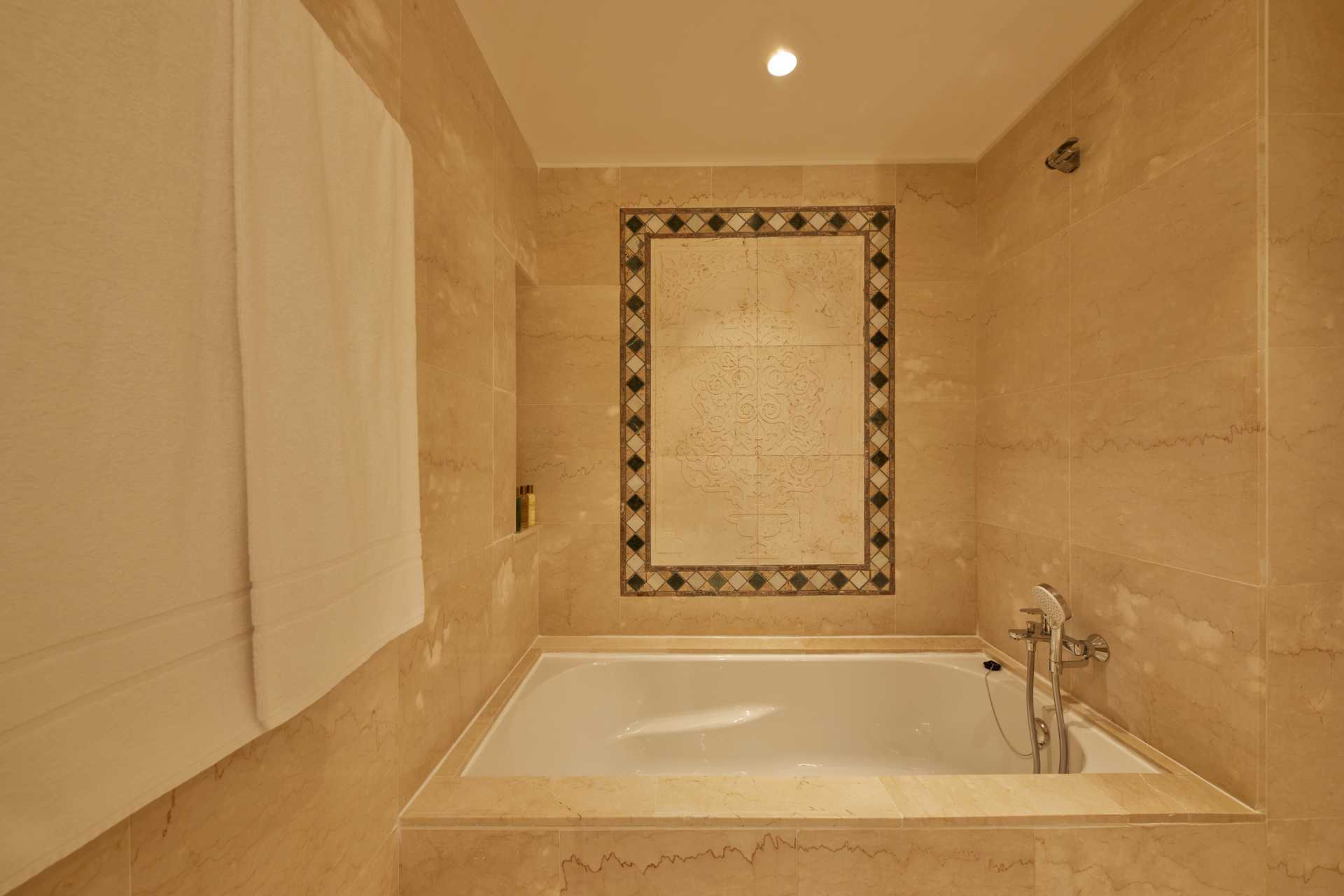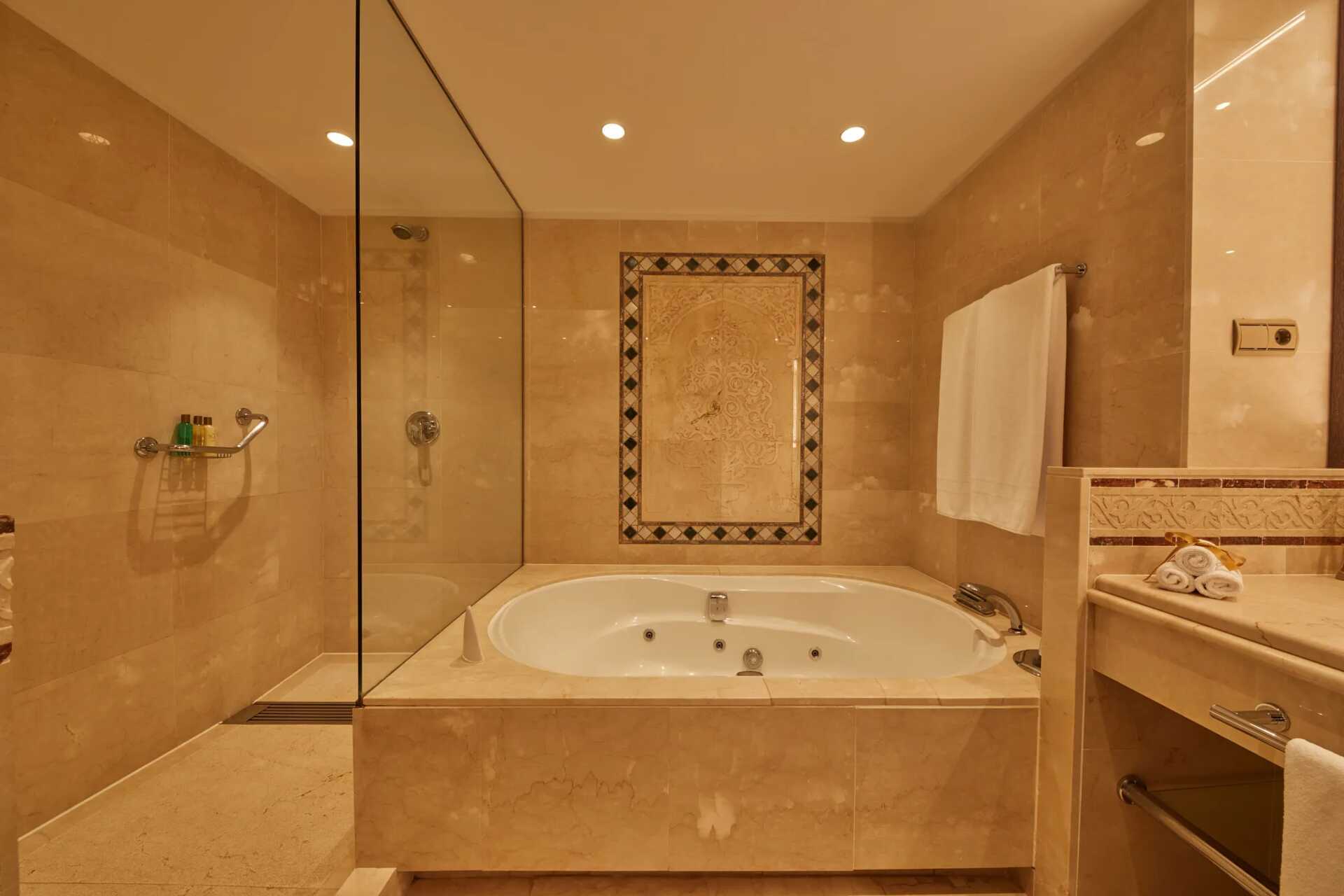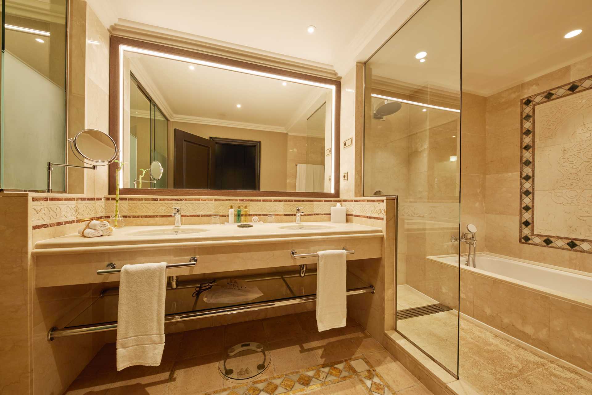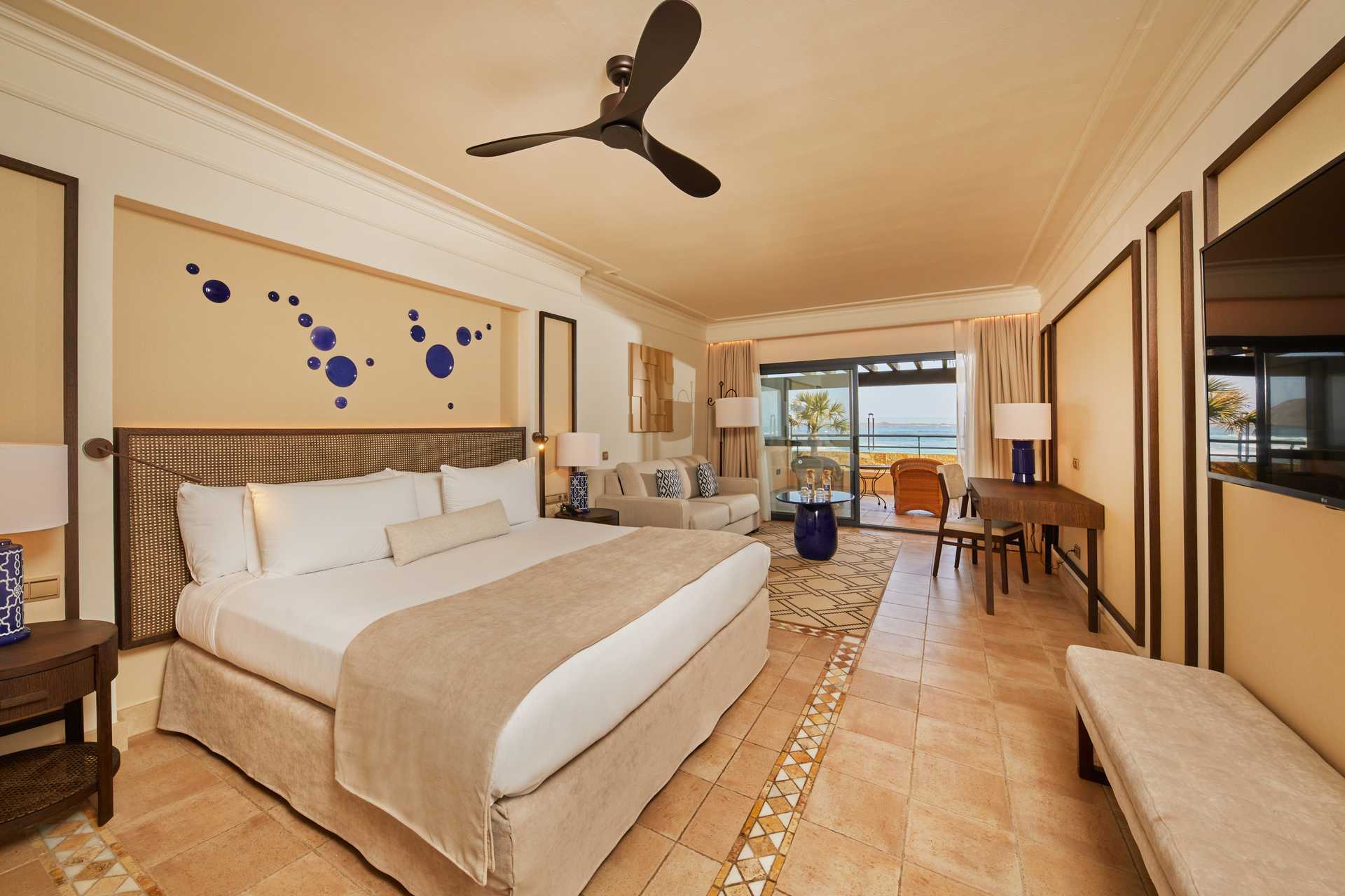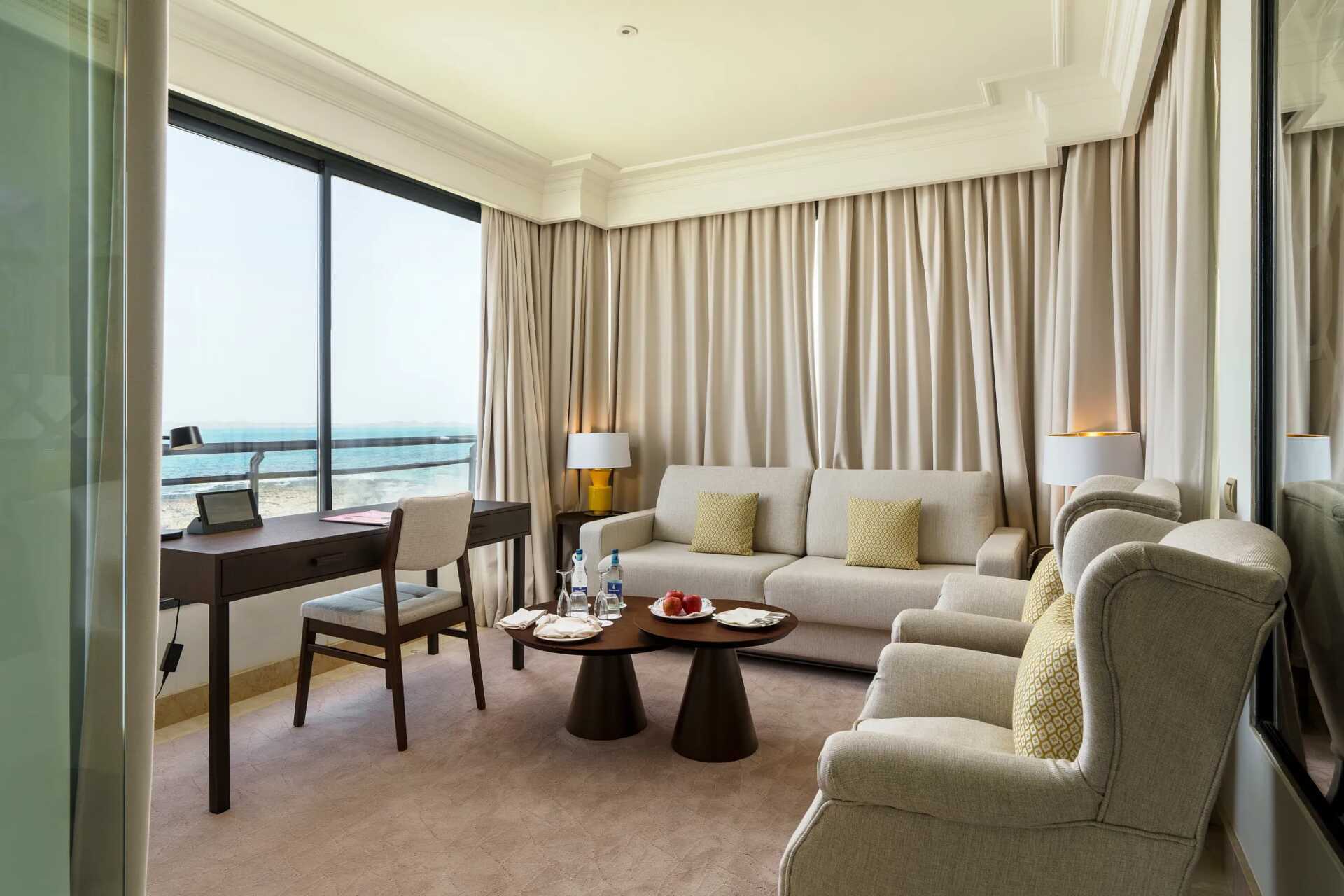 Suite med balkong og havutsikt. Suiten består av et soverom med en dobbeltseng eller to enkeltsenger og en stue med lenestoler, sofa og bord. Stor balkong med lenestoler og bord samt solsenger. Wifi, sentralstyrt luftkondisjonering (oppvarming om vinteren) og safe inkludert. Takvifte. Putemeny. Minibar er inkludert og fylles daglig med vann, brus og øl. Vannkoker samt kaffe og te. TV. Badekåper og tøfler Hårføner. Badekar med boblebad, separat dusj og wc. Rengjøring 7 ggr/uke.