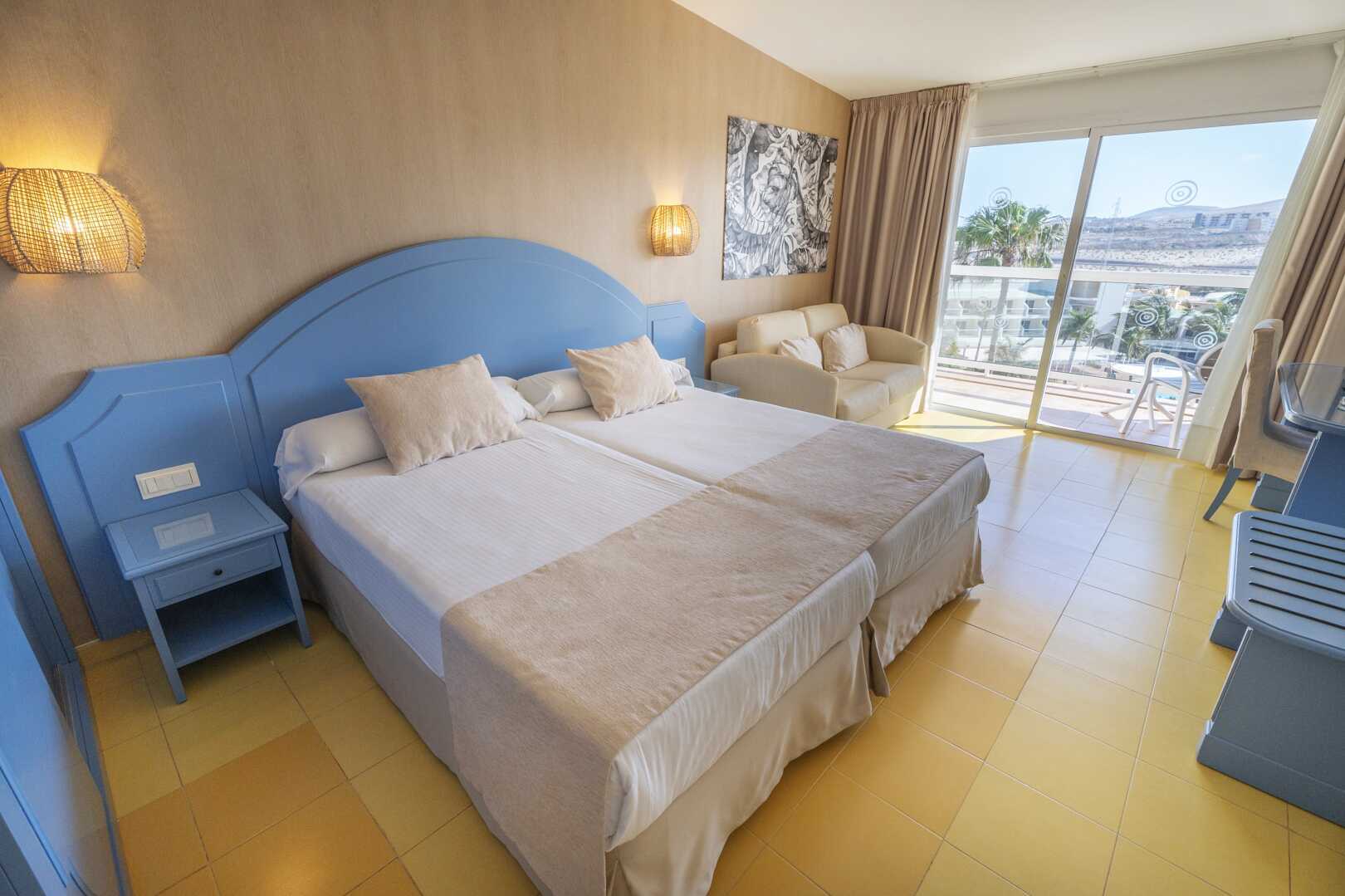 Dobbeltrom med balkong eller terrasse. To enkeltsenger. Mulig med ekstrasenger i sovesofa. Wifi og luftkondisjonering inkludert. Safe mot avgift. TV. Hårføner. Dusj og wc. Rengjøring 7 ggr/uke. Barn under 2 år regnes inn i maksantallet i rommet.