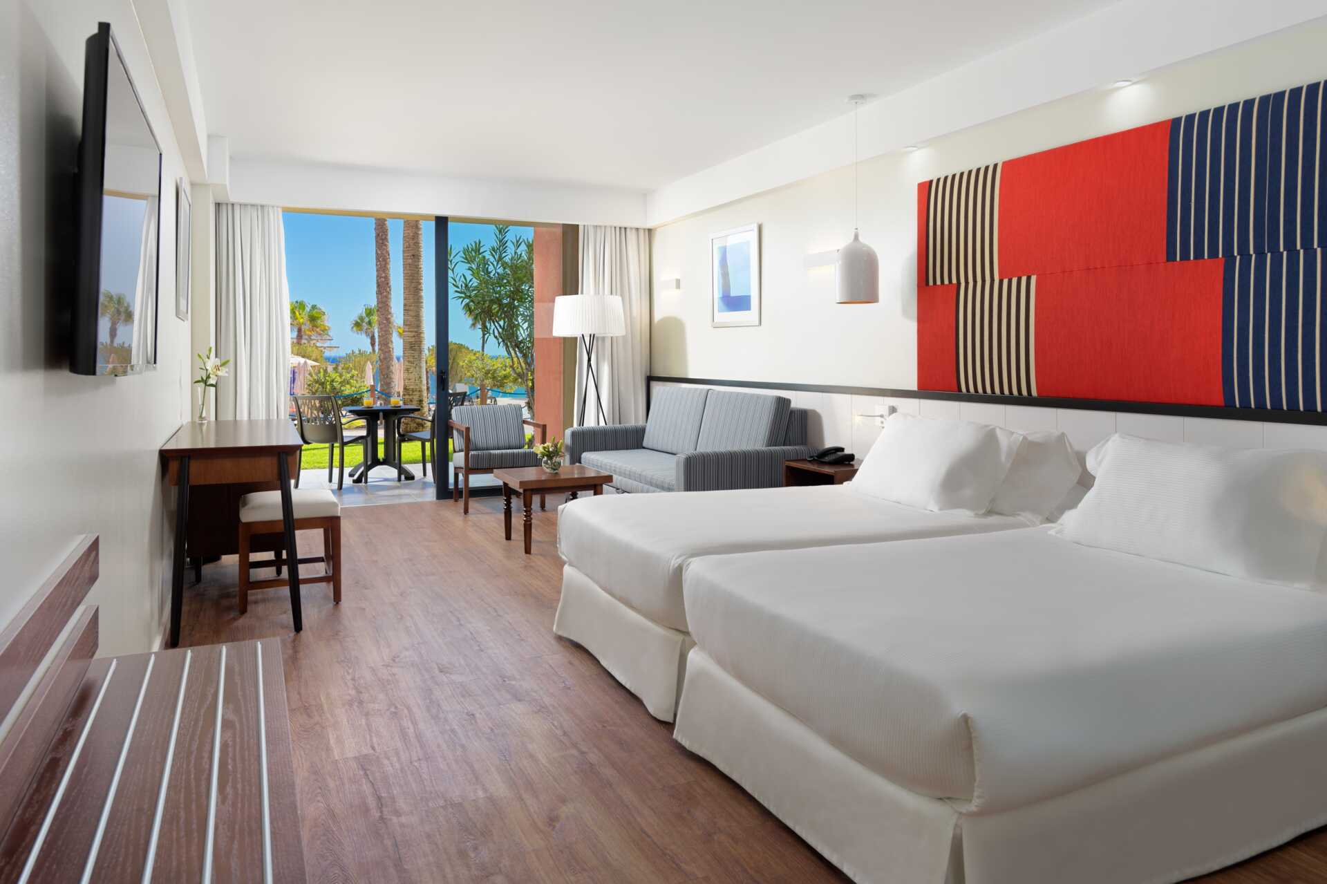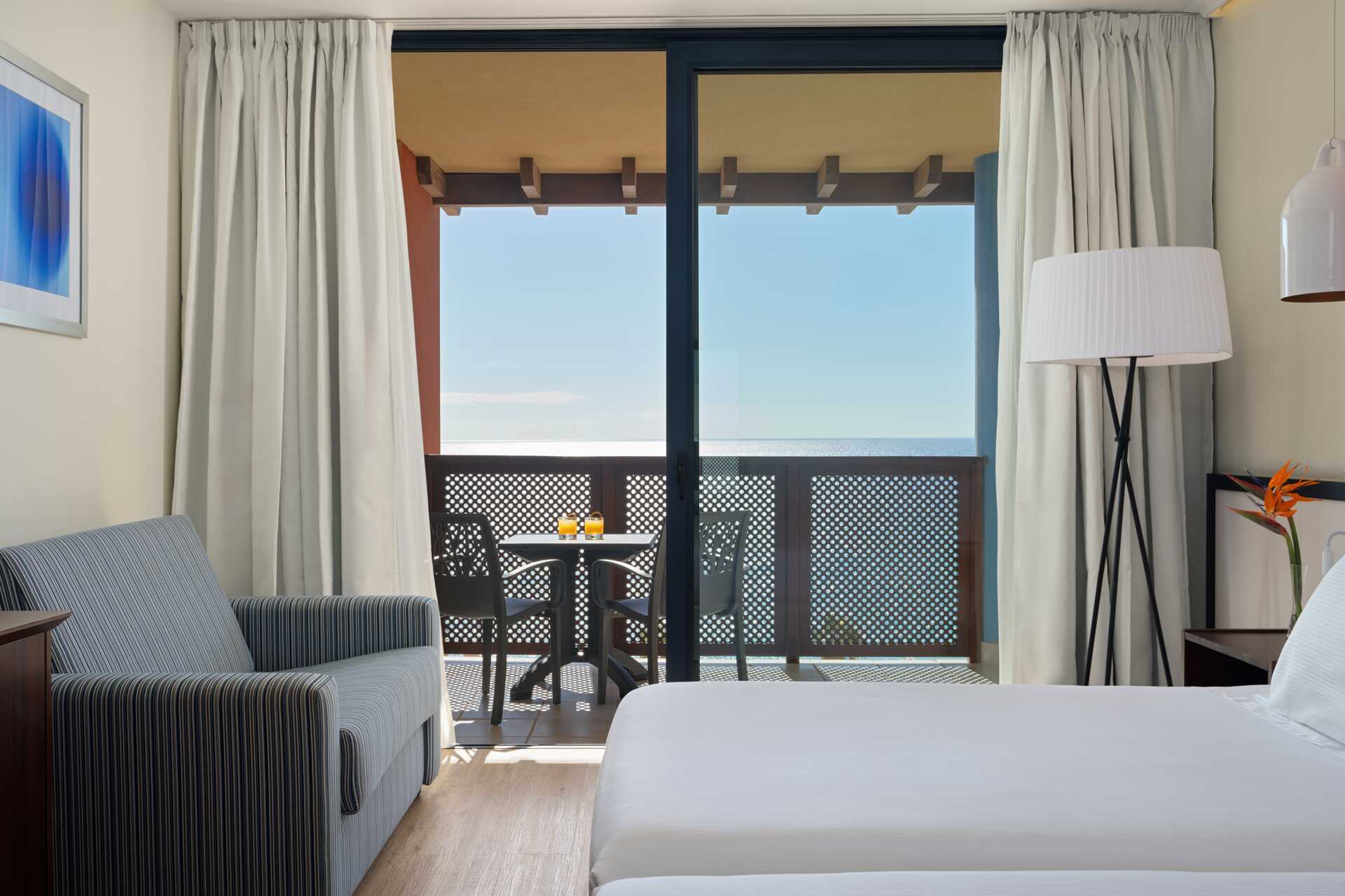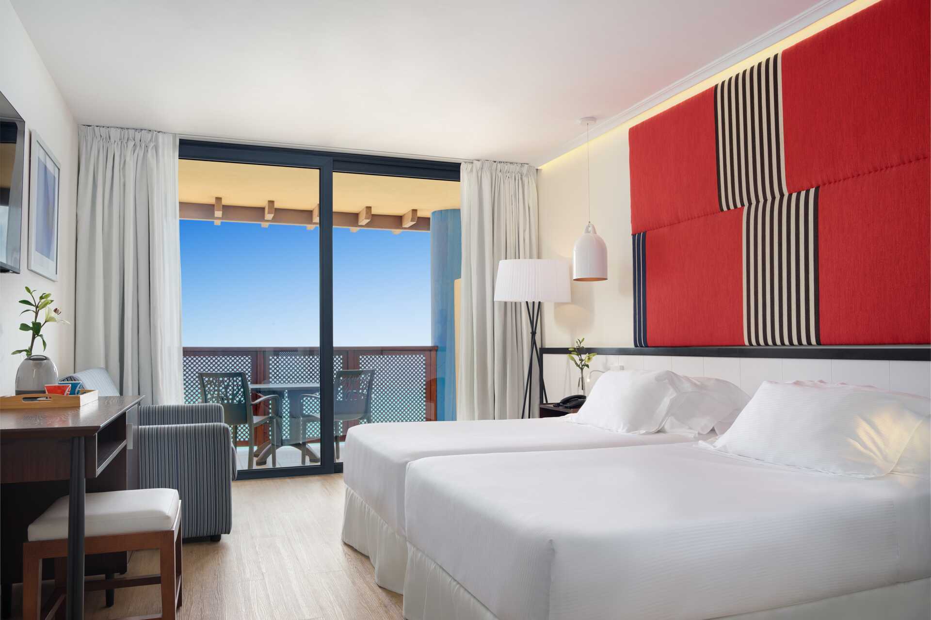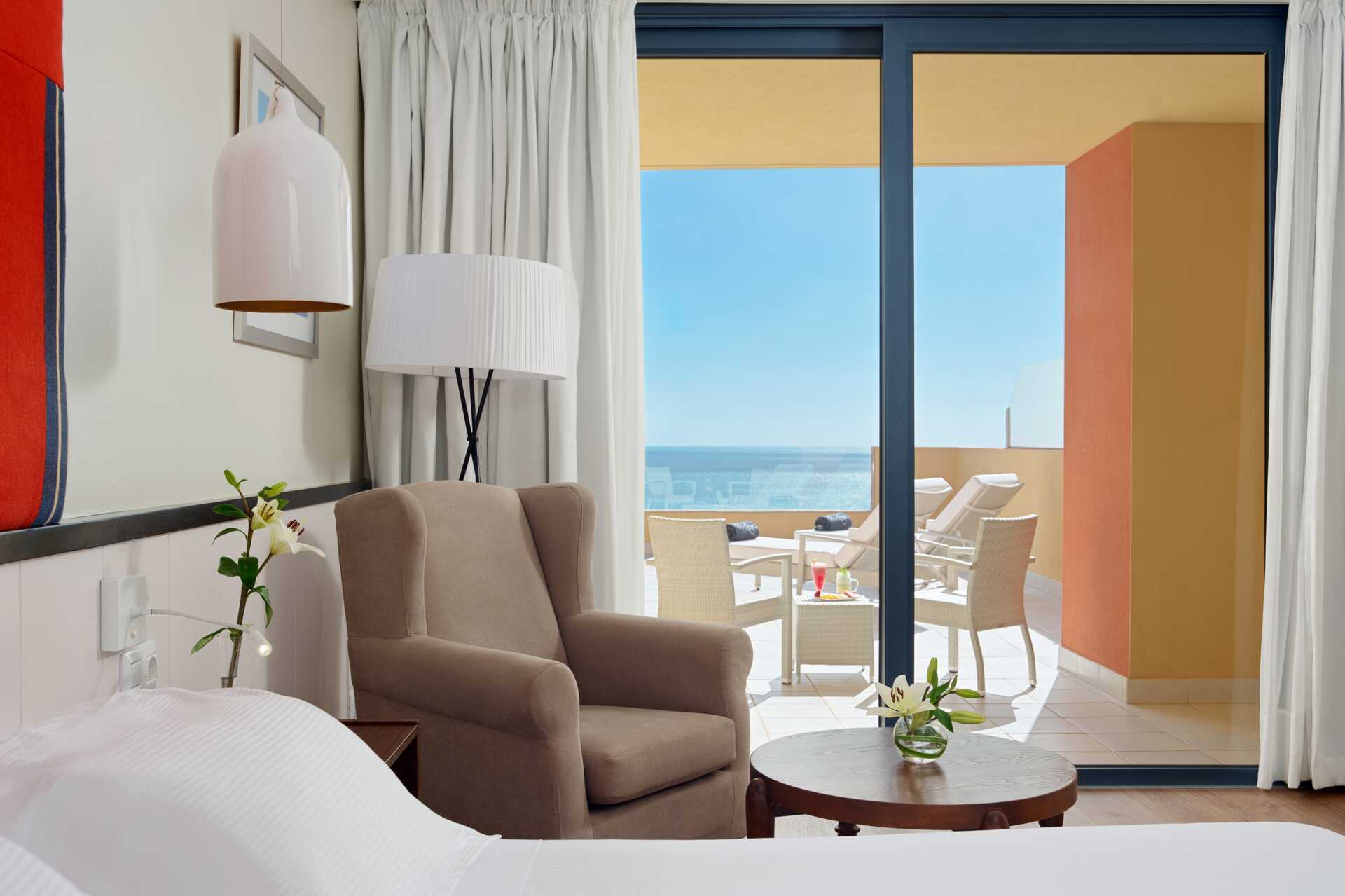 Superiorrom med balkong eller terrasse og havutsikt. To enkeltsenger. Mulig med en ekstraoppredning i sovesofa. Wifi og luftkondisjonering inkludert. Safe mot avgift. Minibar mot tillegg. Vannkoker mot avgift. TV. Hårføner. Badekar eller dusj og wc. Rengjøring 5 ggr/uke.