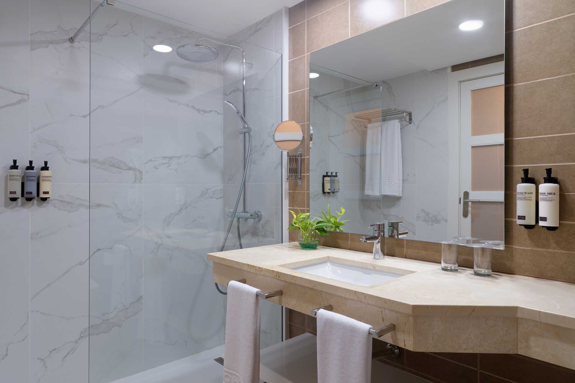 Juniorsuite med balkong eller terrasse og havutsikt. Suiten består av et soverom og en stue. En dobbeltseng. Mulig med en ekstraoppredning i sovesofa. Wifi og luftkondisjonering inkludert. Safe mot avgift. Minibar mot tillegg. Nespresso kaffemaskin. Vannkoker mot avgift. TV. Hårføner. Badekåper og tøfler. Badekar og wc. Rengjøring 5 ggr/uke.