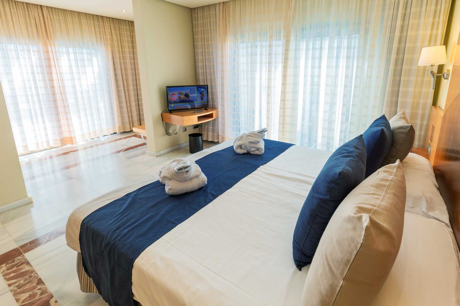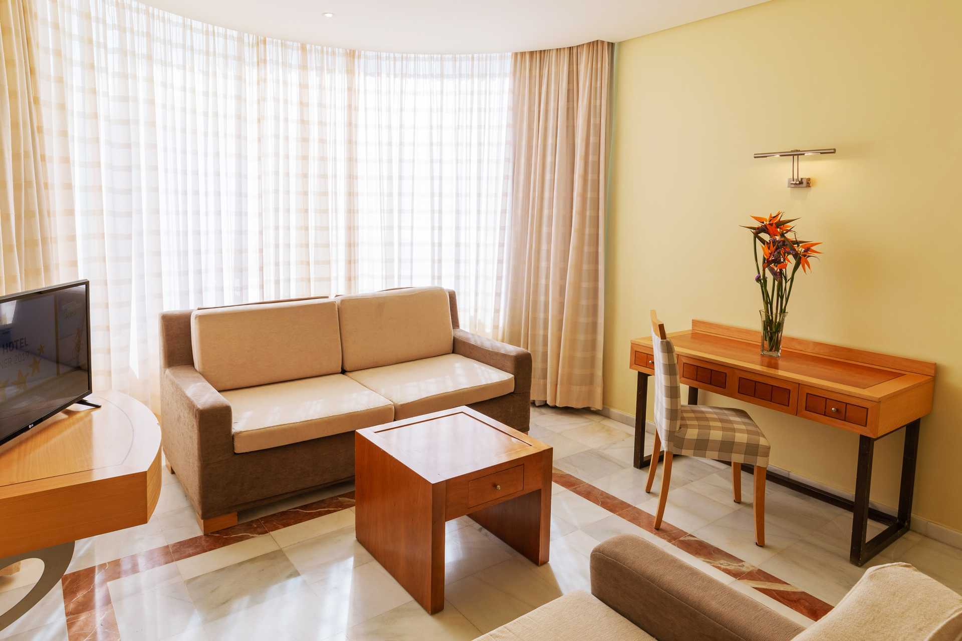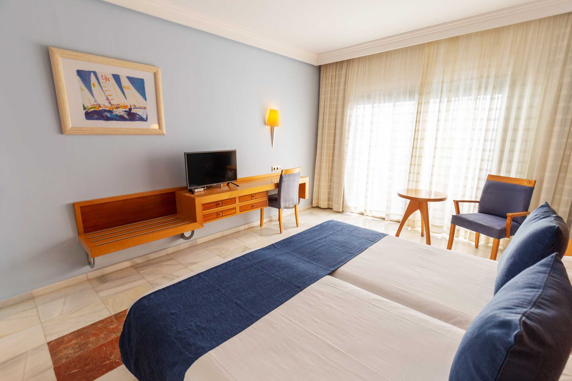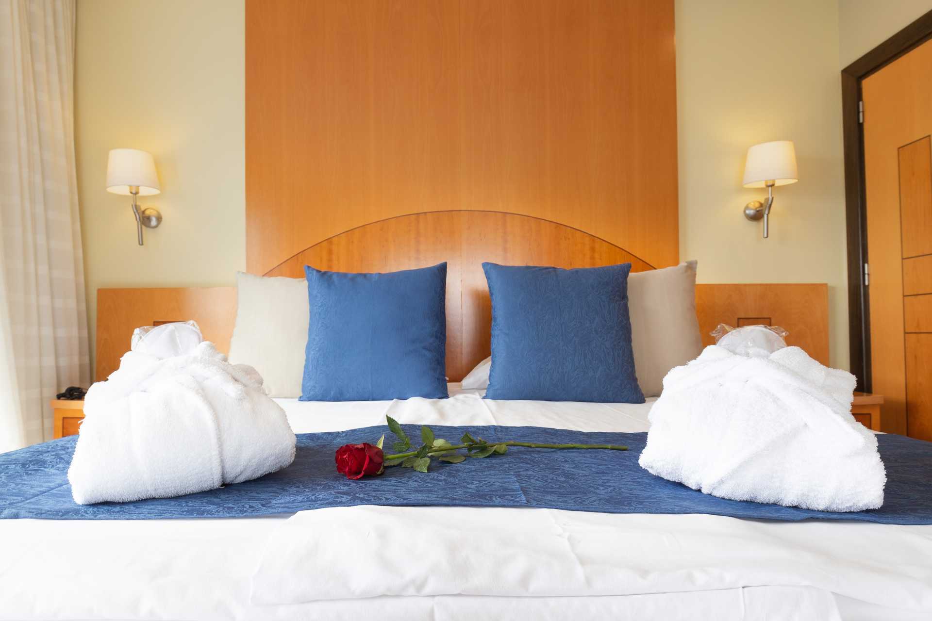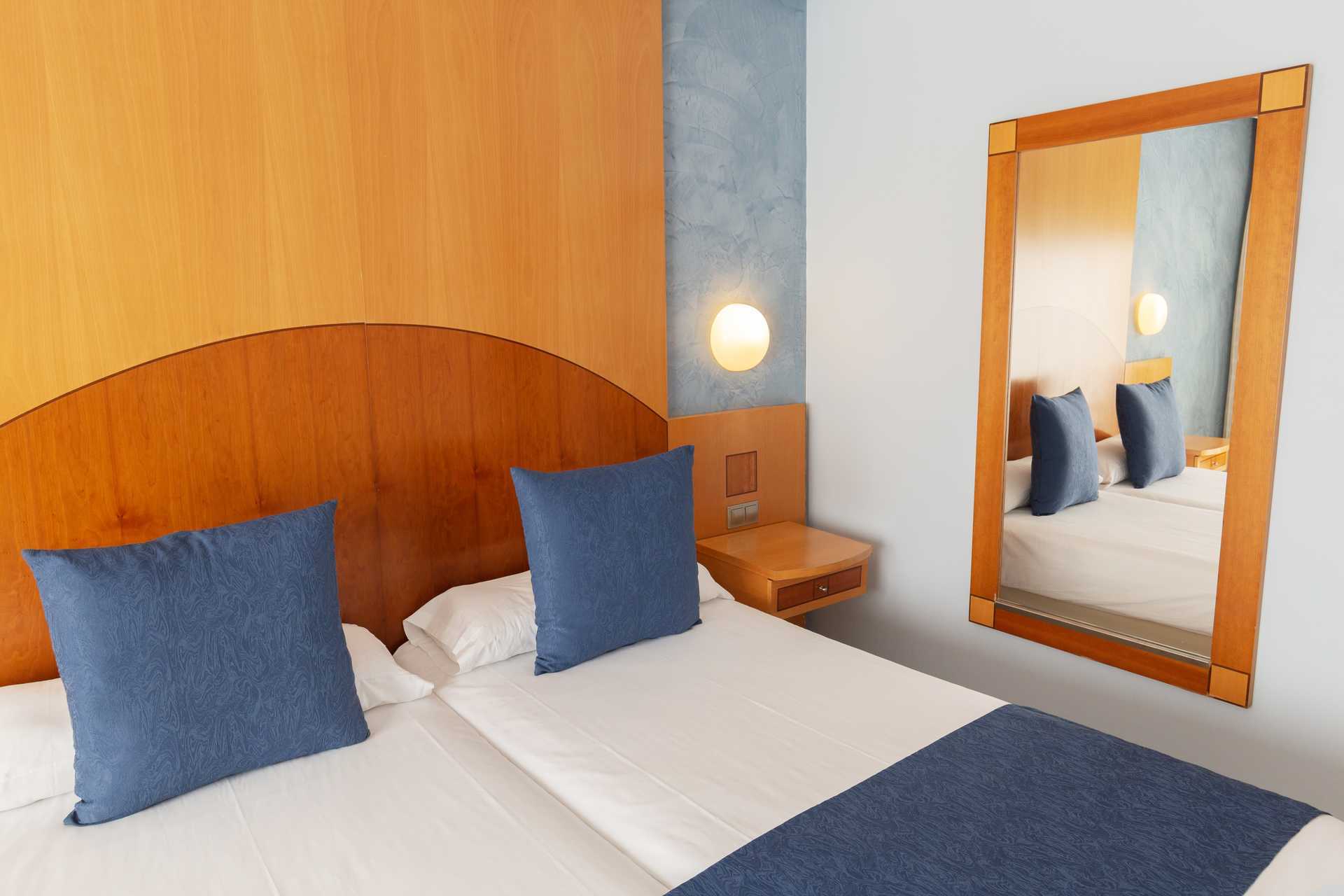Dobbeltrom med balkong eller terrasse, noen med begrenset havutsikt. To enkeltsenger. Mulig med ekstraseng. Luftkondisjonering og wifi inkludert. Safe mot avgift. Kjøleskap. TV. Hårføner. Bad med dusj og wc. Rengjøring 7 ggr/uke. Barn under 2 år regnes inn i maksantallet i rommet.