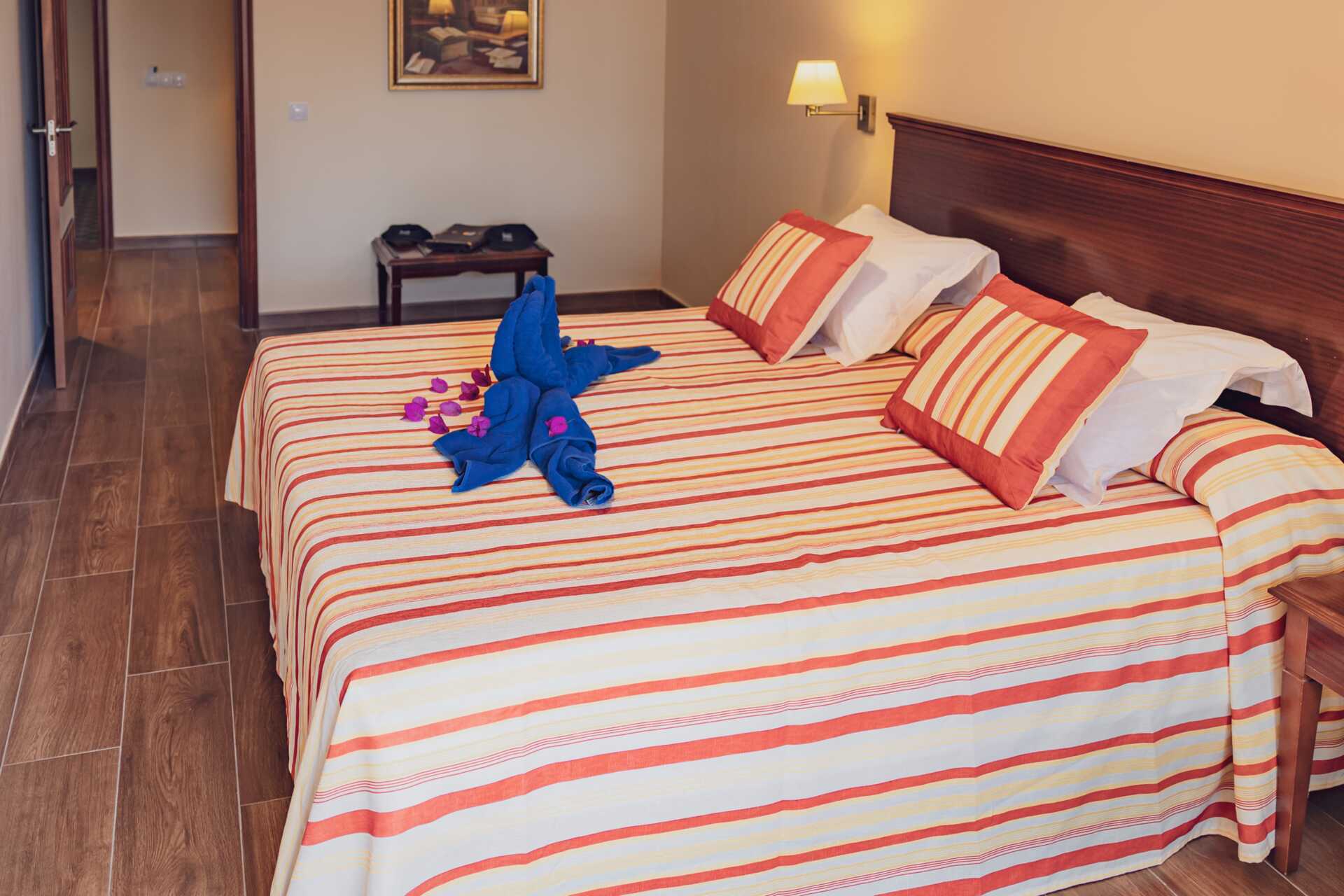 Dobbeltrom med balkong, noen med havutsikt. En dobbeltseng eller to enkeltsenger. Mulig med ekstraseng. Luftkondisjonering inkludert. Wifi og safe mot avgift. Minibar. Smart-TV. Hårføner. Badekar eller dusj samt wc. Rengjøring 7 ggr/uke.