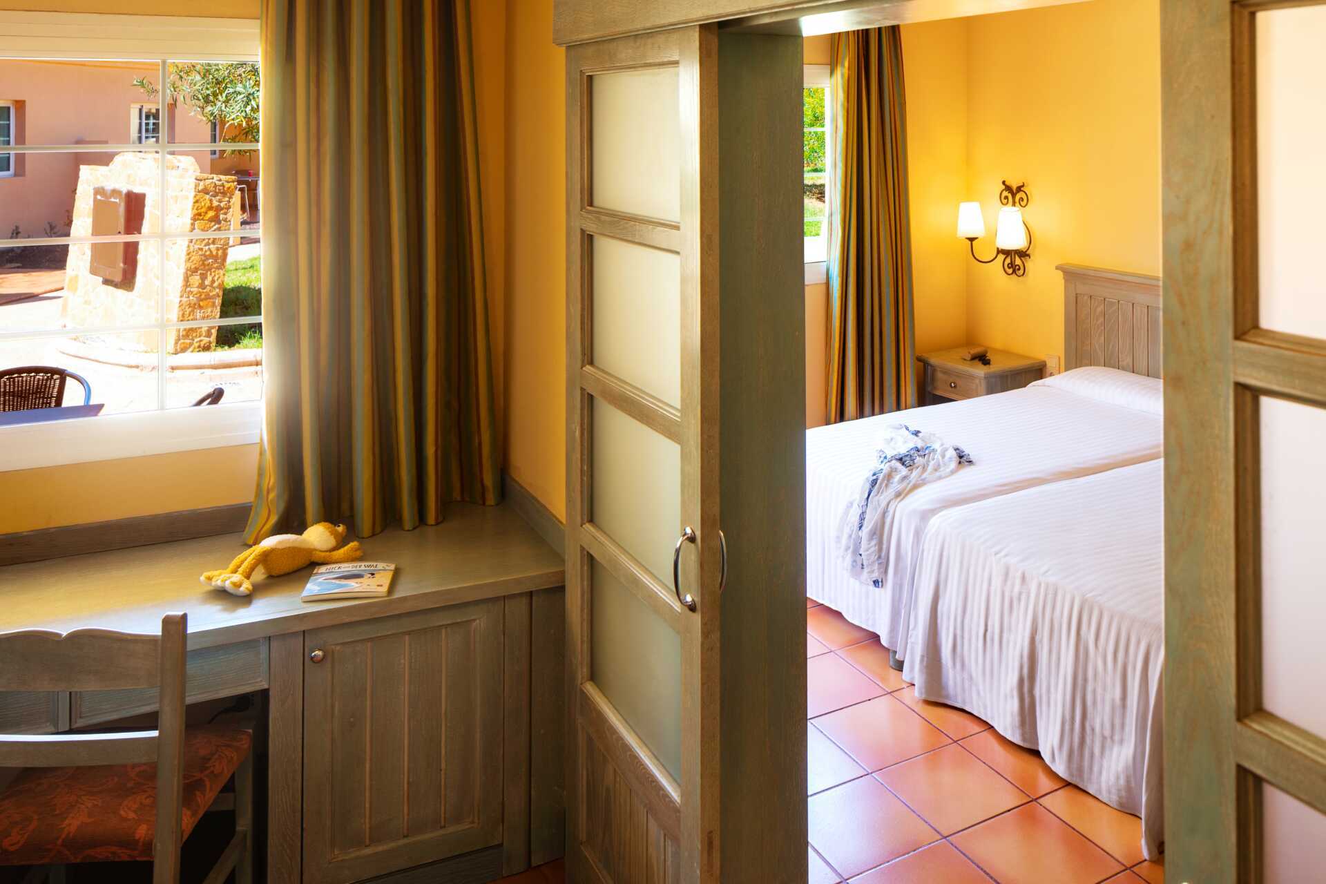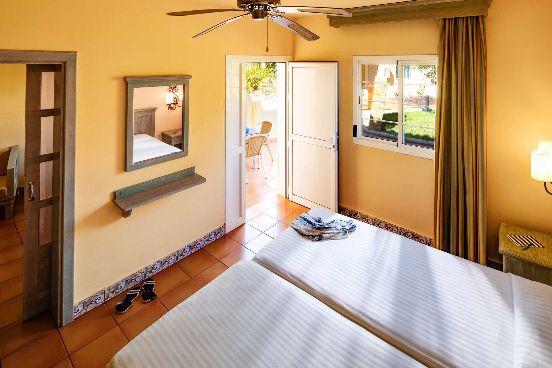 Suite med balkong eller terrasse. Suiten består av et soverom og en stue. En dobbeltseng eller to enkeltsenger. Mulig med ekstrasenger i to sovesofaer. Wifi inkludert. Safe mot avgift. Takvifte. Kjøleskap. TV. Hårføner. Dusj og wc. Rengjøring 5 ggr/uke.