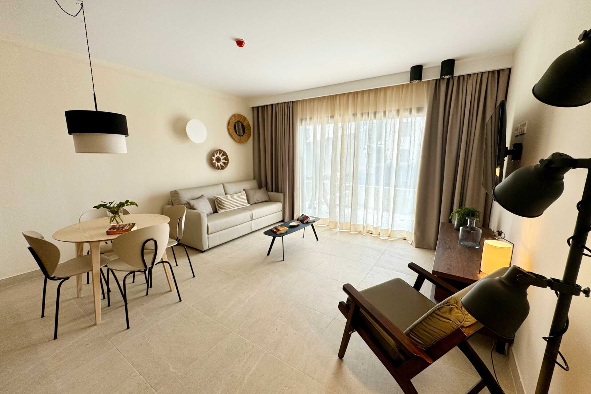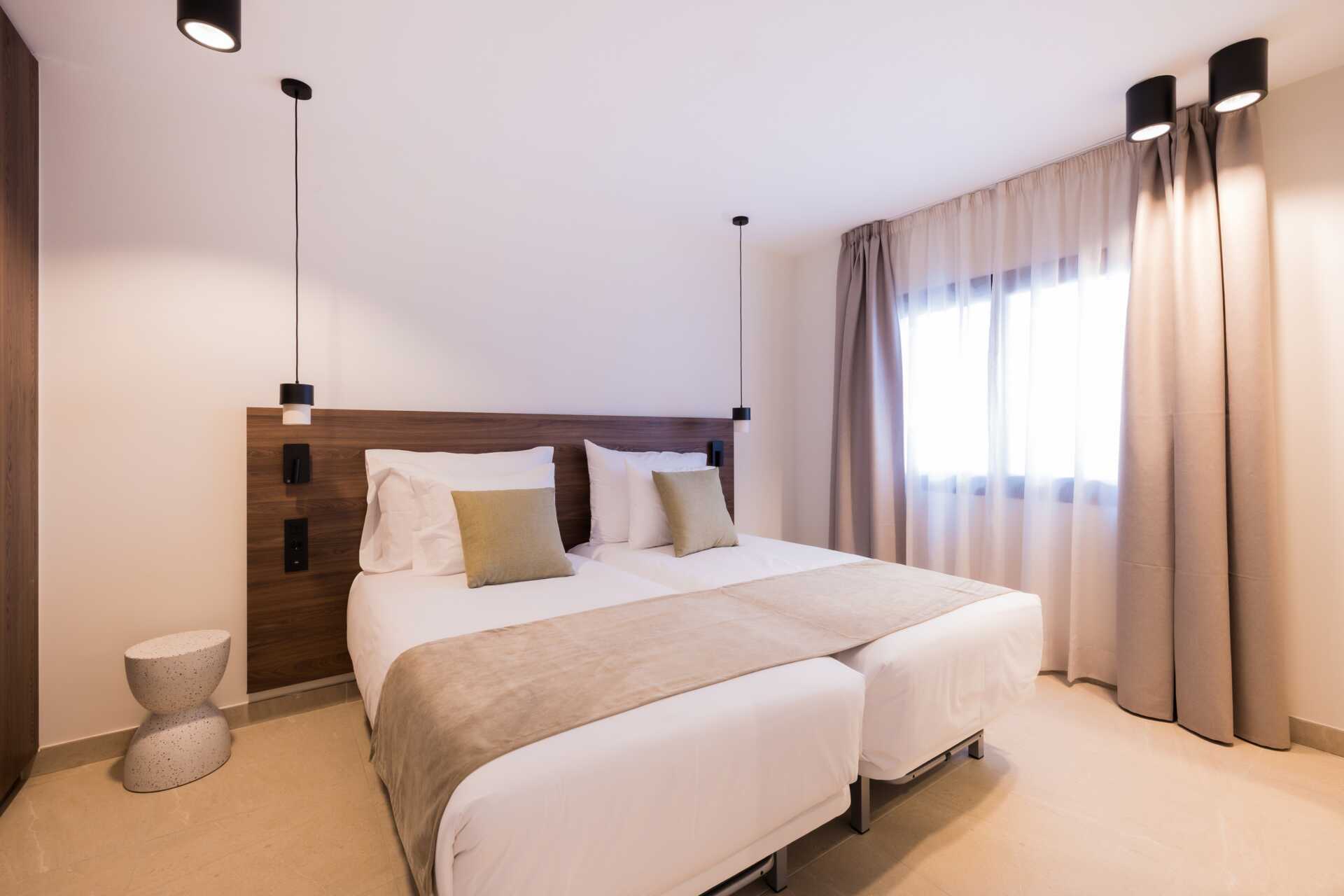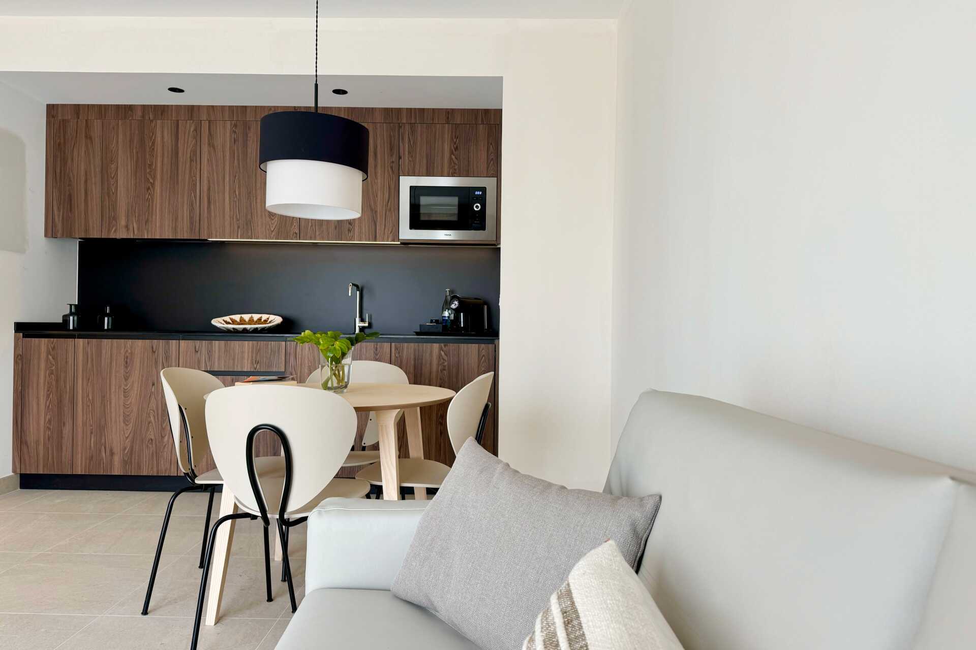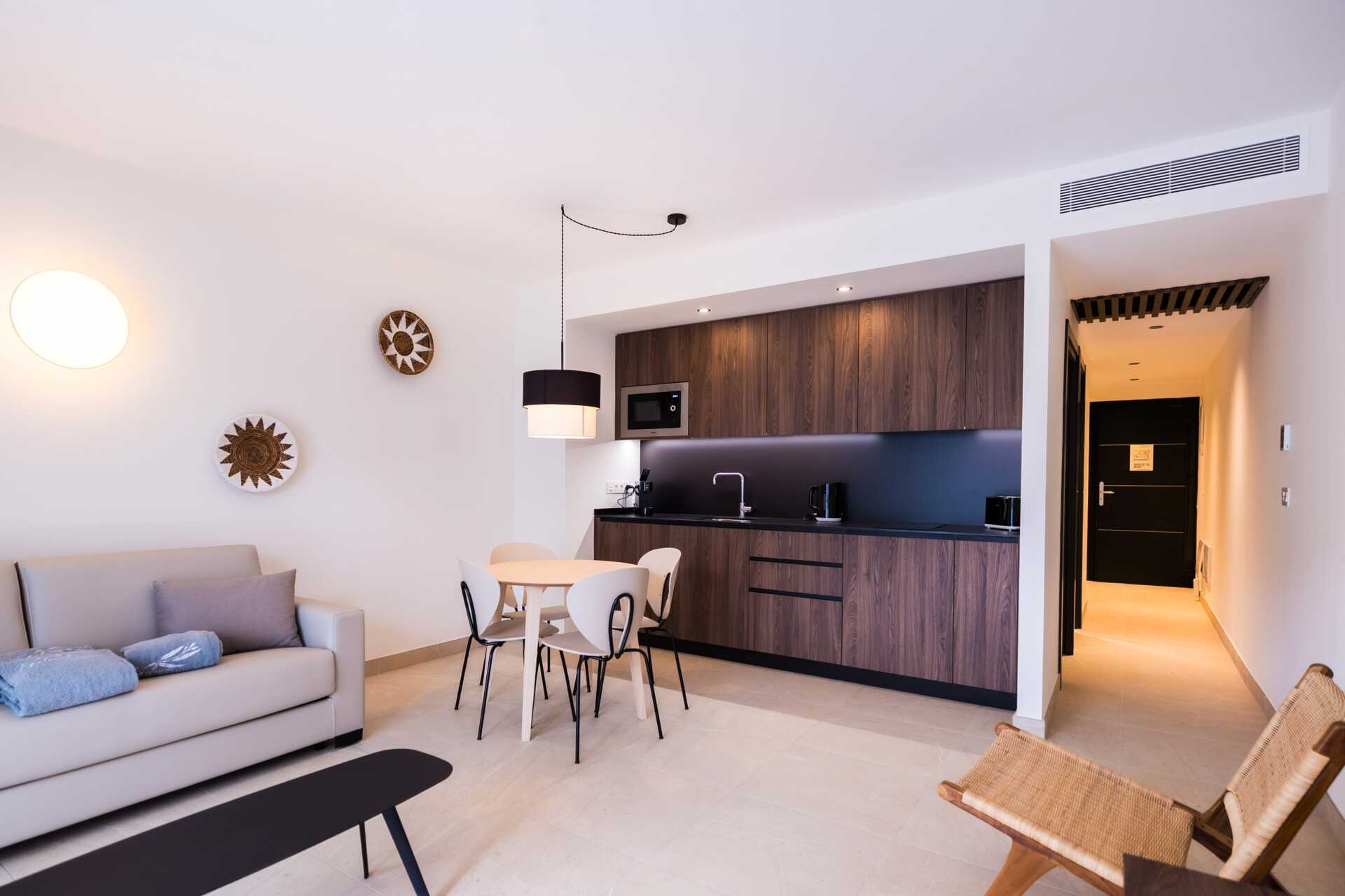 Treromsleilighet med eget basseng på uteplassen. To soverom og kombinert stue med minikjøkken. Minikjøkken med kokeplater, kjøleskap, kaffetrakter, vannkoker, kaffe og te og enkelt kjøkkenutstyr. Wifi, luftkondisjonering og safe inkludert. TV. Hårføner. Bad med dusj og wc. Rengjøring 7 ggr/uke.