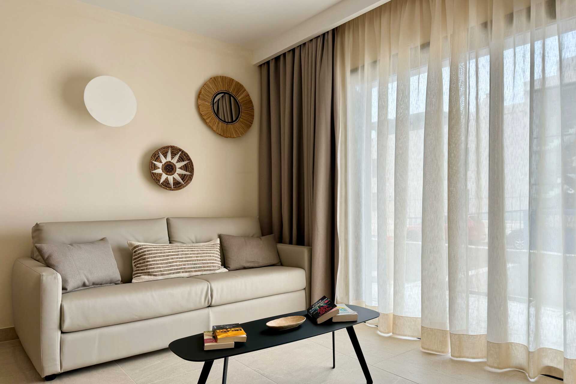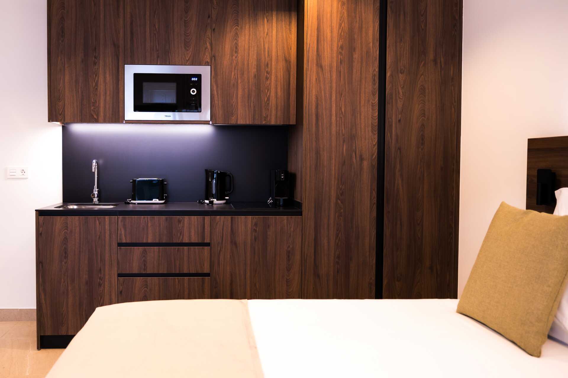 Toromsleilighet med balkong og takterrasse. Et soverom og stue med minikjøkken. Minikjøkken med kokeplater, kjøleskap, kaffetrakter, vannkoker, kaffe og te og enkelt kjøkkenutstyr. Wifi, luftkondisjonering og safe inkludert. TV. Hårføner. Bad med dusj og wc. Rengjøring 7 ggr/uke.