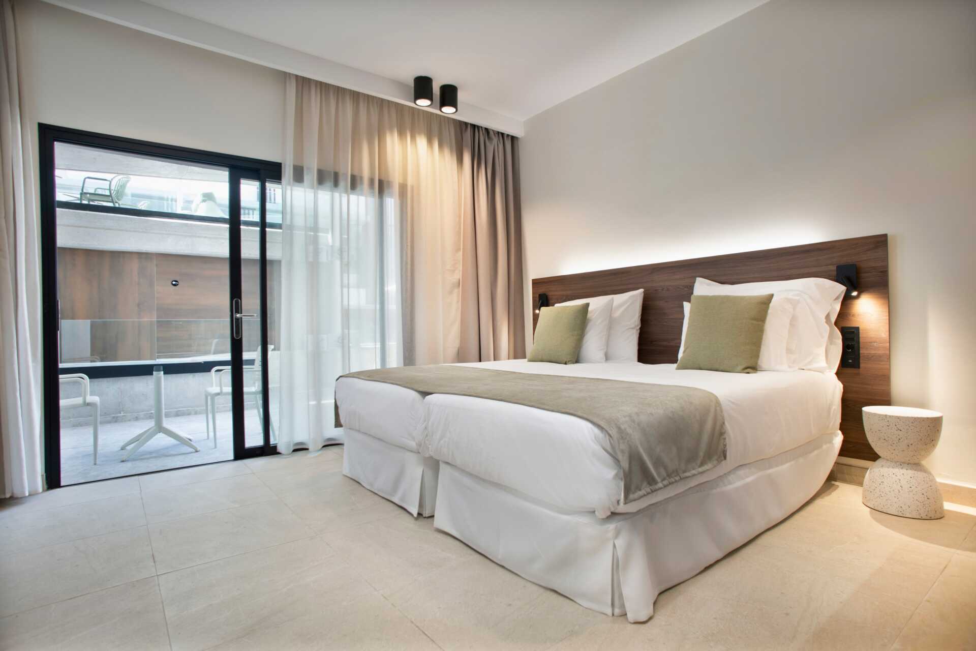 Toromsleilighet med balkong og takterrasse. Et soverom og en stue med minikjøkken. Minikjøkken med kokeplater, kjøleskap, kaffetrakter, vannkoker og enkelt kjøkkenutstyr. Wifi, luftkondisjonering og safe inkludert. TV. Hårføner. Dusj og wc. Rengjøring 7 ggr/uke.
