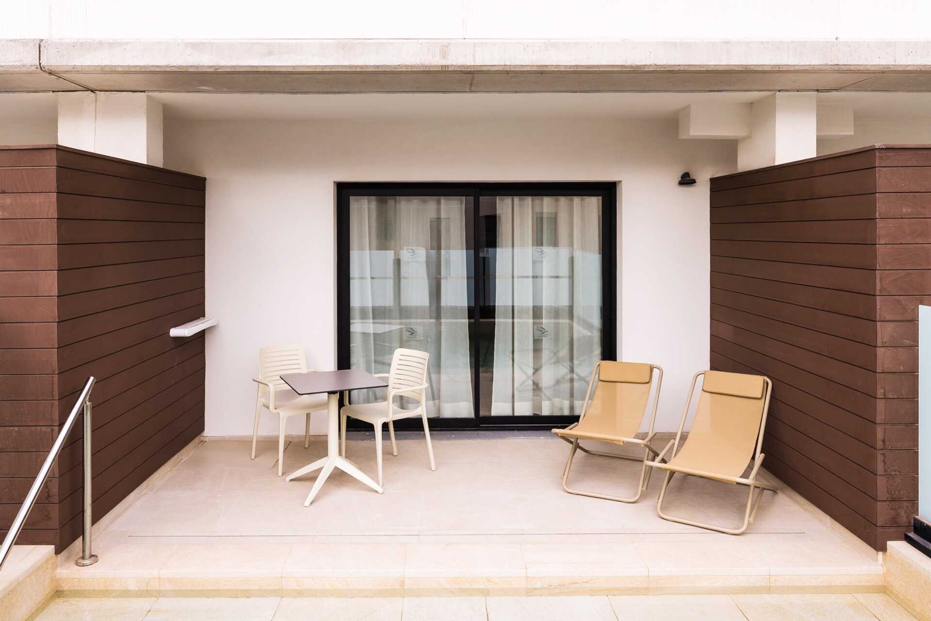 Treromsleilighet med balkong og terrasse. To soverom og kombinert stue med minikjøkken. Minikjøkken med kokeplater, kjøleskap, kaffetrakter, vannkoker, kaffe og te og enkelt kjøkkenutstyr. Wifi, luftkondisjonering og safe inkludert. TV. Hårføner. Bad med dusj og wc. Rengjøring 7 ggr/uke.