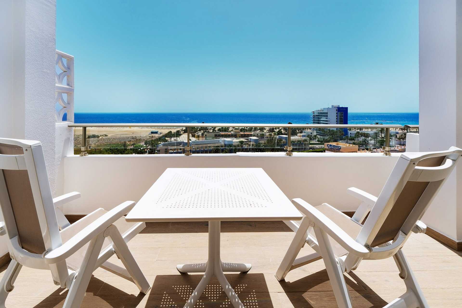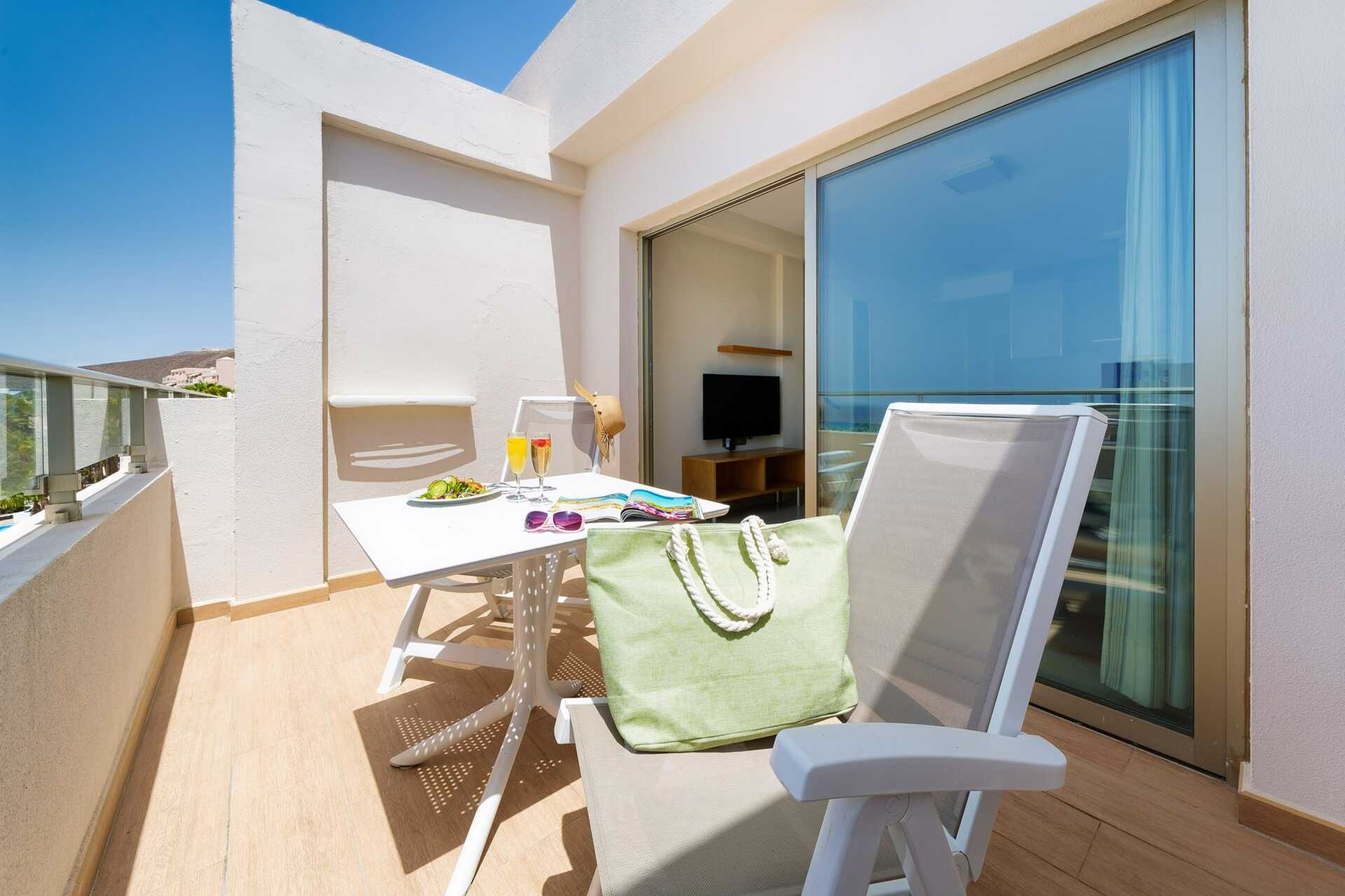 Toromsleilighet superior med balkong og havutsikt. Leilighetene ligger i 4., 5. eller 6. etasje. Soverom og kombinert stue/minikjøkken. To enkeltsenger. Mulig med en ekstraseng i sovesofa. Wifi er inkludert. Safe mot avgift. Minikjøkken med kokeplater, kjøleskap, kaffetrakter, mikrobølgeovn og enkelt kjøkkenutstyr. TV. Bad med dusj og wc. Rengjøring 3 ggr/uke.