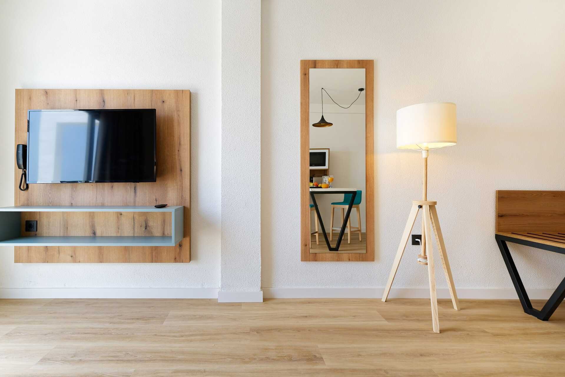 Toromsleilighet i de øvre etasjene med balkong og havutsikt. Leilighetene ligger i 6. etasje. Et soverom og kombinert stue/minikjøkken. To enkeltsenger. Mulig med ekstraseng i sovesofa. Wifi inkludert. Safe mot avgift. Minikjøkken med kokeplater, kjøleskap, brødrister og enkelt kjøkkenutstyr. Spisebord ved bardisk. TV. Dusj og wc. Rengjøring 2 ggr/uke.