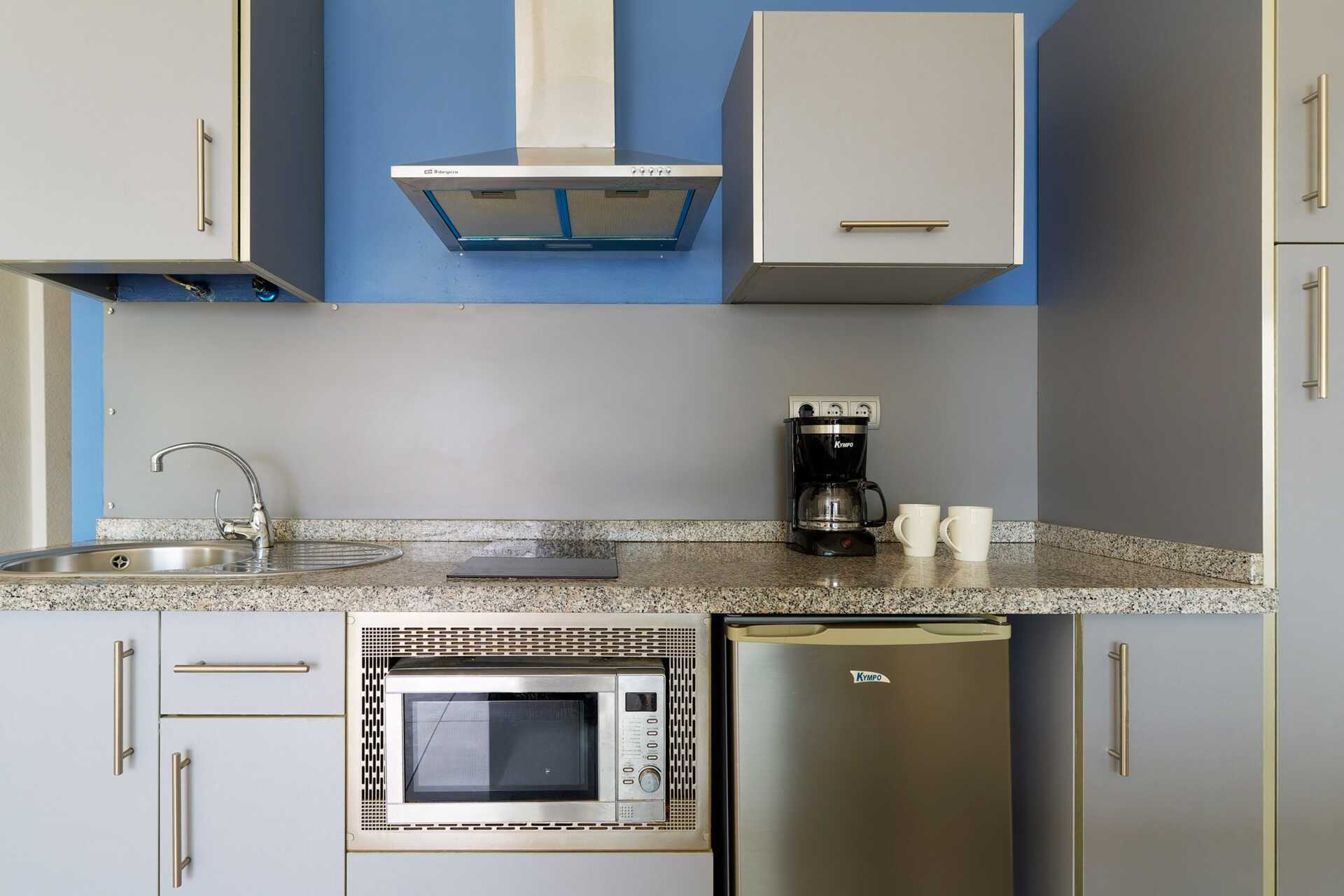 Toromsleilighet med balkong og havutsikt. Et soverom og en stue med minikjøkken. To enkeltsenger. Mulig med ekstraseng i sovesofa. Wifi inkludert. Safe mot avgift. Minikjøkken med kokeplater, kjøleskap, vannkoker, kaffetrakter og enkelt kjøkkenutstyr. TV. Dusj og wc. Rengjøring 2 ggr/uke.