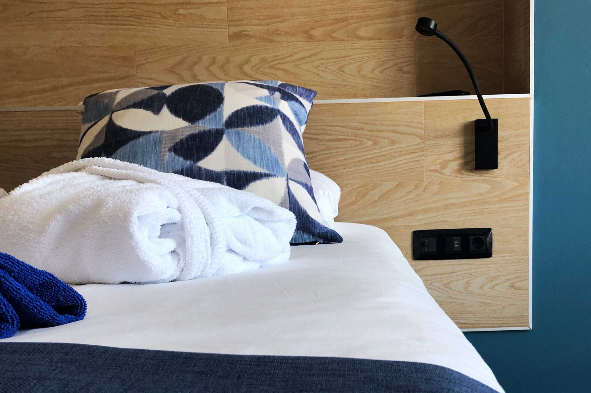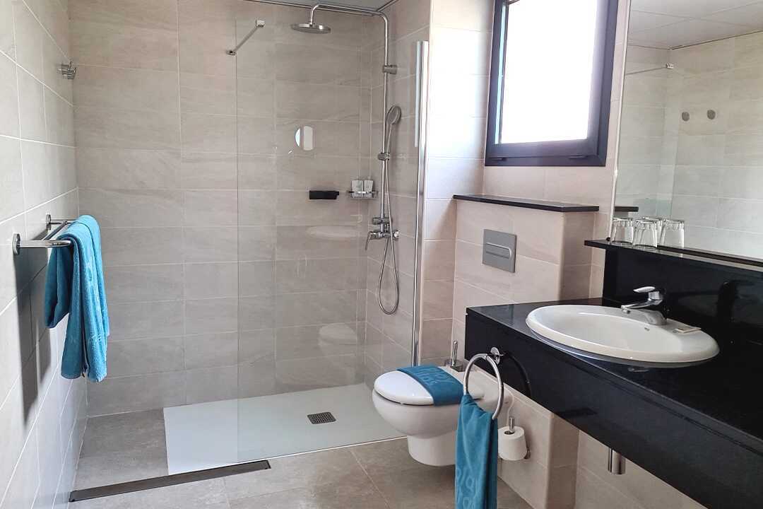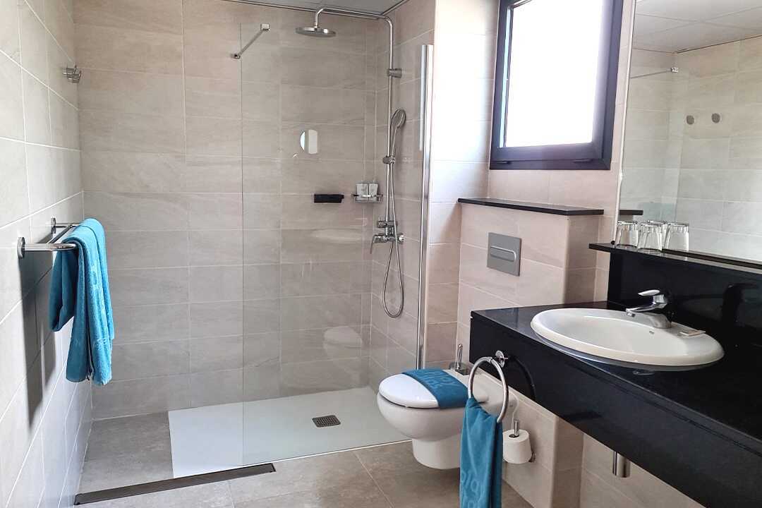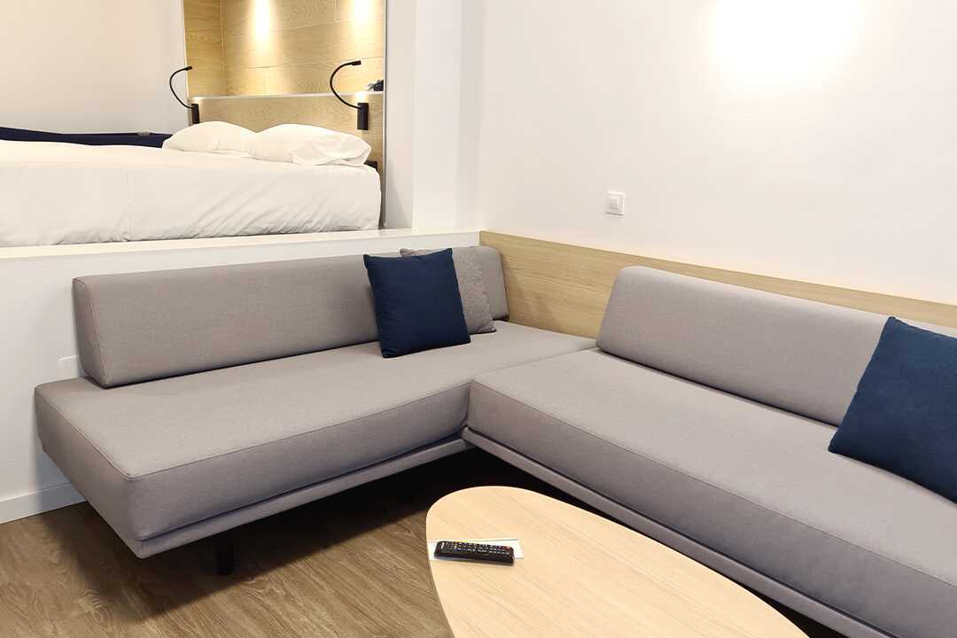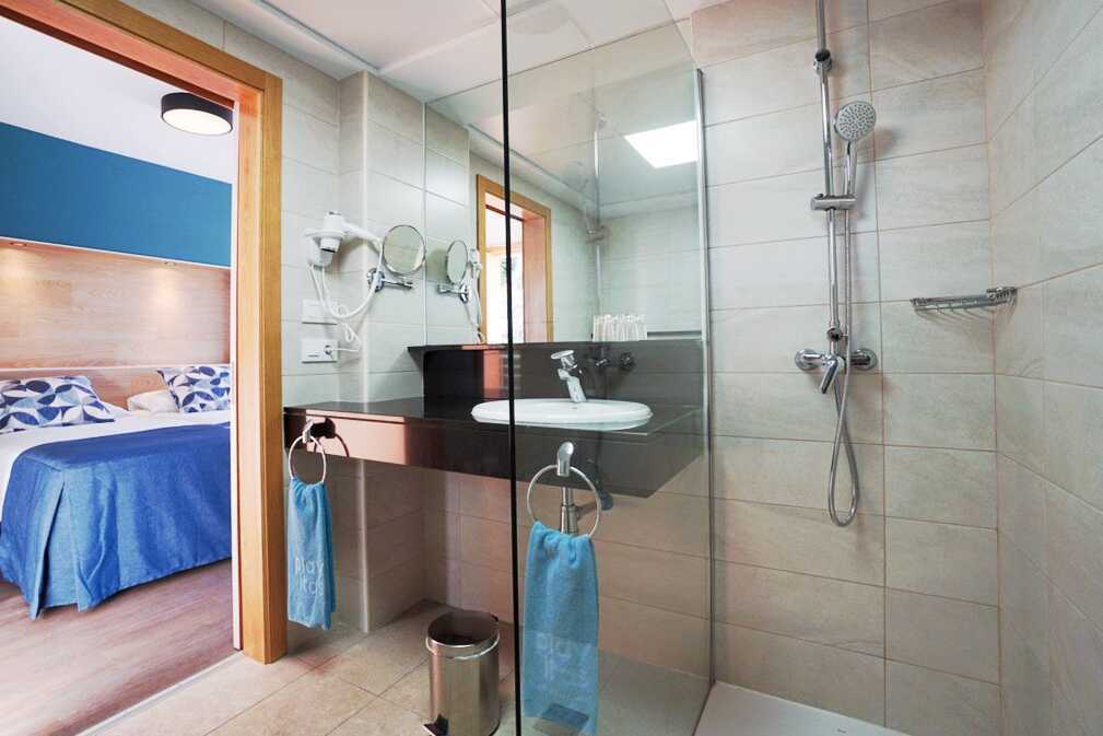Toromsleilighet med balkong, noen med havutsikt eller begrenset havutsikt. En dobbeltseng. Mulig med ekstraseng i sovesofa eller feltseng. Wifi, safe og sentralstyrt luftkondisjonering inkludert. Minibar, påfyll bestilles i resepsjonen. Vannkoker. TV. Hårføner. Mulighet for leie av badekåper. Bad med dusj og wc. Rengjøring 7 ggr/uke.