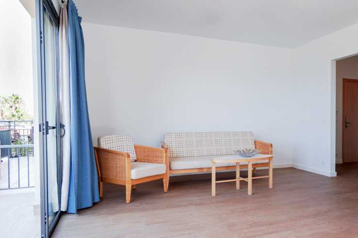 Toromsleilighet med balkong eller markterrasse, noen med havutsikt eller begrenset havutsikt. Leilighetene ble renovert i 2022. En dobbeltseng eller to enkeltsenger. Mulig med ekstrasenger i enkeltsenger. Et soverom og en stue med minikjøkken. Minikjøkken med kokeplater, kjøleskap, mikrobølgeovn, kaffetrakter, vannkoker og enkelt kjøkkenutstyr. Wifi, safe og sentralstyrt luftkondisjonering inkludert. TV. Mulighet for leie av badekåper. Hårføner. Bad med dusj og wc. Rengjøring 5 ggr/uke.