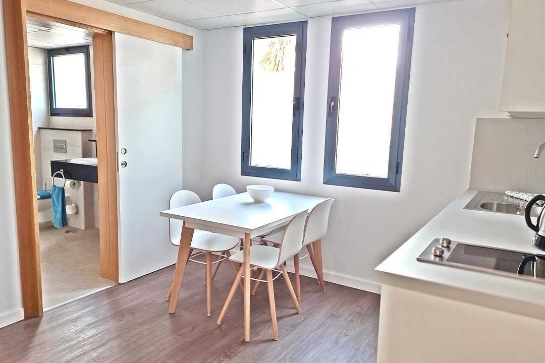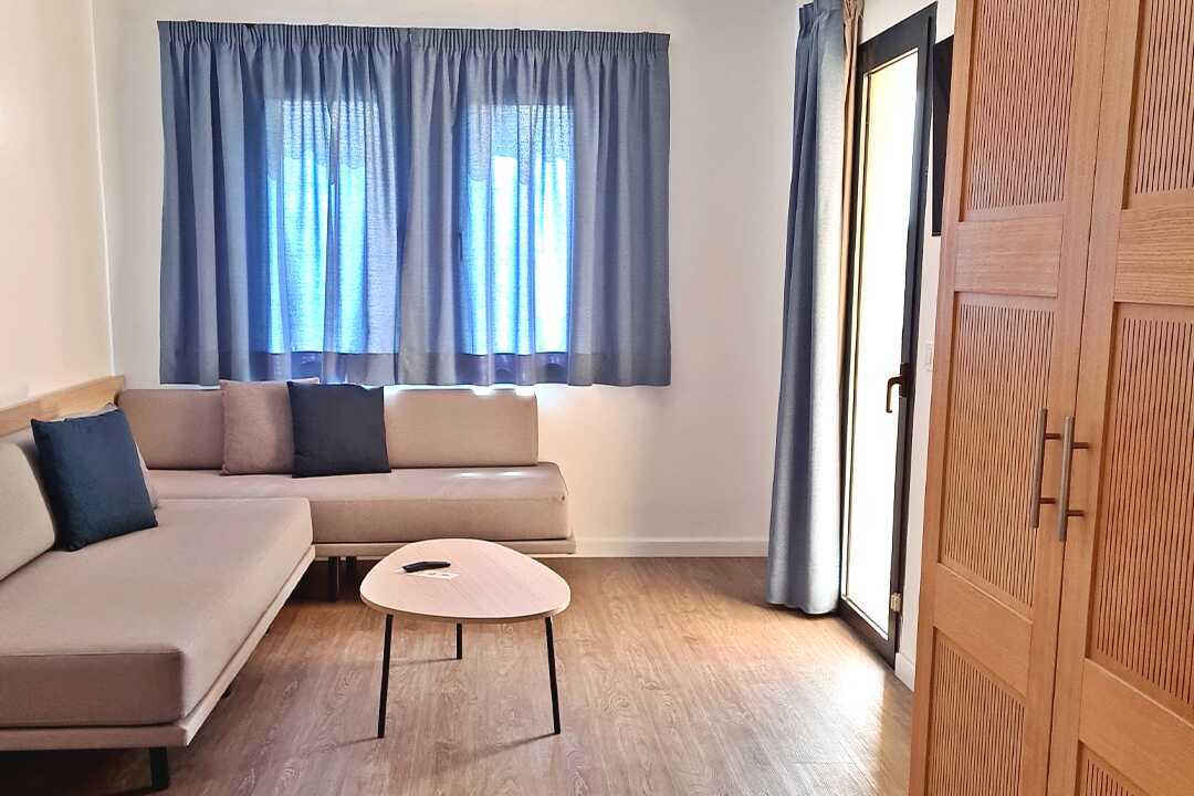 Ettromsleilighet med balkong eller markterrasse, noen med havutsikt eller begrenset havutsikt. Leilighetene ble renovert i 2022. En dobbeltseng eller to enkeltsenger. Mulig med ekstrasenger i enkeltsenger. Minikjøkken. Sovedelen er adskilt fra stuedelen med et par trappetrinn. Minikjøkken med kokeplater, kjøleskap, mikrobølgeovn, kaffetrakter, vannkoker og enkelt kjøkkenutstyr. Wifi, safe og sentralstyrt luftkondisjonering inkludert. TV. Hårføner. Dusj og wc. Rengjøring 5 ggr/uke.