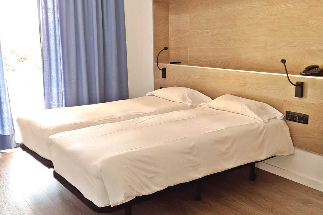 Dobbeltrom med balkong, noen med begrenset havutsikt eller med havutsikt. Rommene ble renovert i 2021. En dobbeltseng eller to enkeltsenger. Wifi, safe og sentralstyrt luftkondisjonering inkludert. Minibar, påfyll bestilles i resepsjonen. Vannkoker. TV. Hårføner. Mulig å leie badekåper. Dusj og wc. Rengjøring 7 ggr/uke.