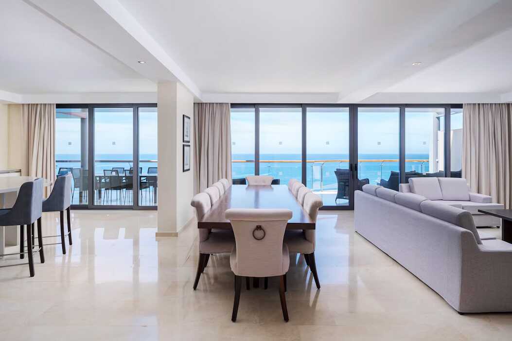 Toromsleilighet superior med balkong og havutsikt. Et soverom og en stue med minikjøkken. En dobbeltseng eller to enkeltsenger. Mulig med ekstrasenger i sovesofa. Minikjøkken med kjøleskap og fryser, kokeplater og stekeovn, mikrobølgeovn, Nespresso kaffemaskin, brødrister og enkelt kjøkkenutstyr samt oppvaskmaskin. Wifi, luftkondisjonering og safe inkludert. Vannkoker samt kaffe og te. TV med internasjonale kanaler. Strykejern og strykebrett. Badekåper og tøfler til voksne. Hårføner. Baderom med badekar eller dusj samt wc. Rengjøring 7 ggr/uke.