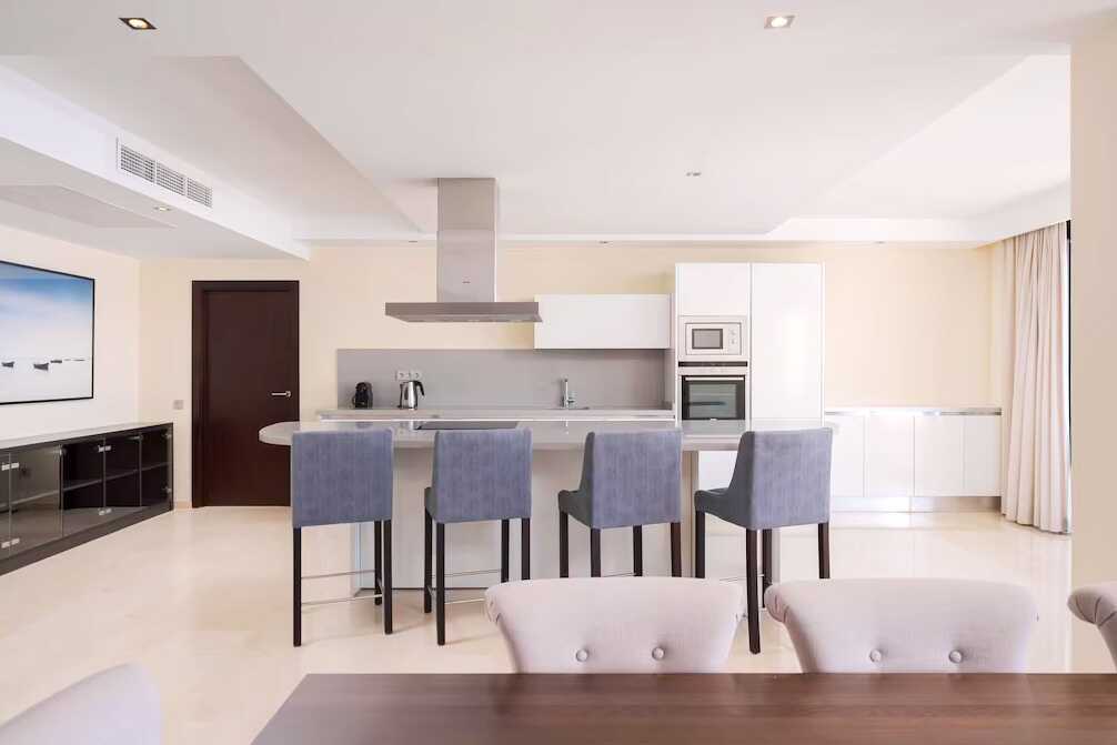 Treromsleilighet med balkong og havutsikt. To soverom og en stue med minikjøkken. Begge soverommene har en dobbeltseng eller to enkeltsenger. Mulig med ekstrasenger i sovesofa. Minikjøkken med kjøleskap og fryser, kokeplater og stekeovn, mikrobølgeovn, Nespresso kaffemaskin, brødrister og enkelt kjøkkenutstyr samt oppvaskmaskin. Wifi, luftkondisjonering og safe inkludert. Vannkoker samt kaffe og te. TV med internasjonale kanaler. Strykejern og strykebrett. Badekåper og tøfler til voksne. Hårføner. To bad med badekar eller dusj samt wc. Rengjøring 7 ggr/uke.