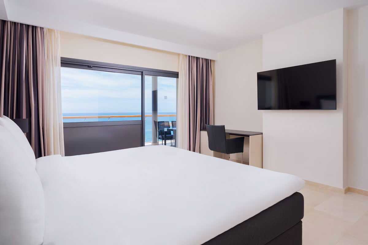 Toromsleilighet med balkong og havutsikt. Et soverom og en stue med minikjøkken. En dobbeltseng eller to enkeltsenger. Mulig med ekstrasenger i sovesofa. Minikjøkken med kjøleskap og fryser, kokeplater og stekeovn, mikrobølgeovn, Nespresso kaffemaskin, brødrister og enkelt kjøkkenutstyr samt oppvaskmaskin. Wifi, luftkondisjonering og safe inkludert. Vannkoker samt kaffe og te. TV med internasjonale kanaler. Strykejern og strykebrett. Badekåper og tøfler til voksne. Hårføner. Baderom med badekar eller dusj samt wc. Rengjøring 7 ggr/uke.