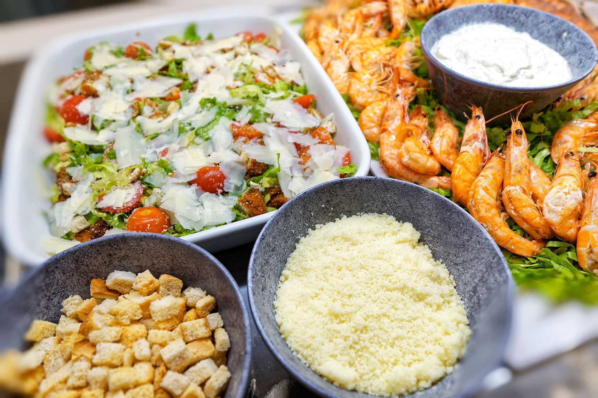 Salatbaren er åpen kl. 12.30-15.00. Lørdager kl. 11.00-16.30.