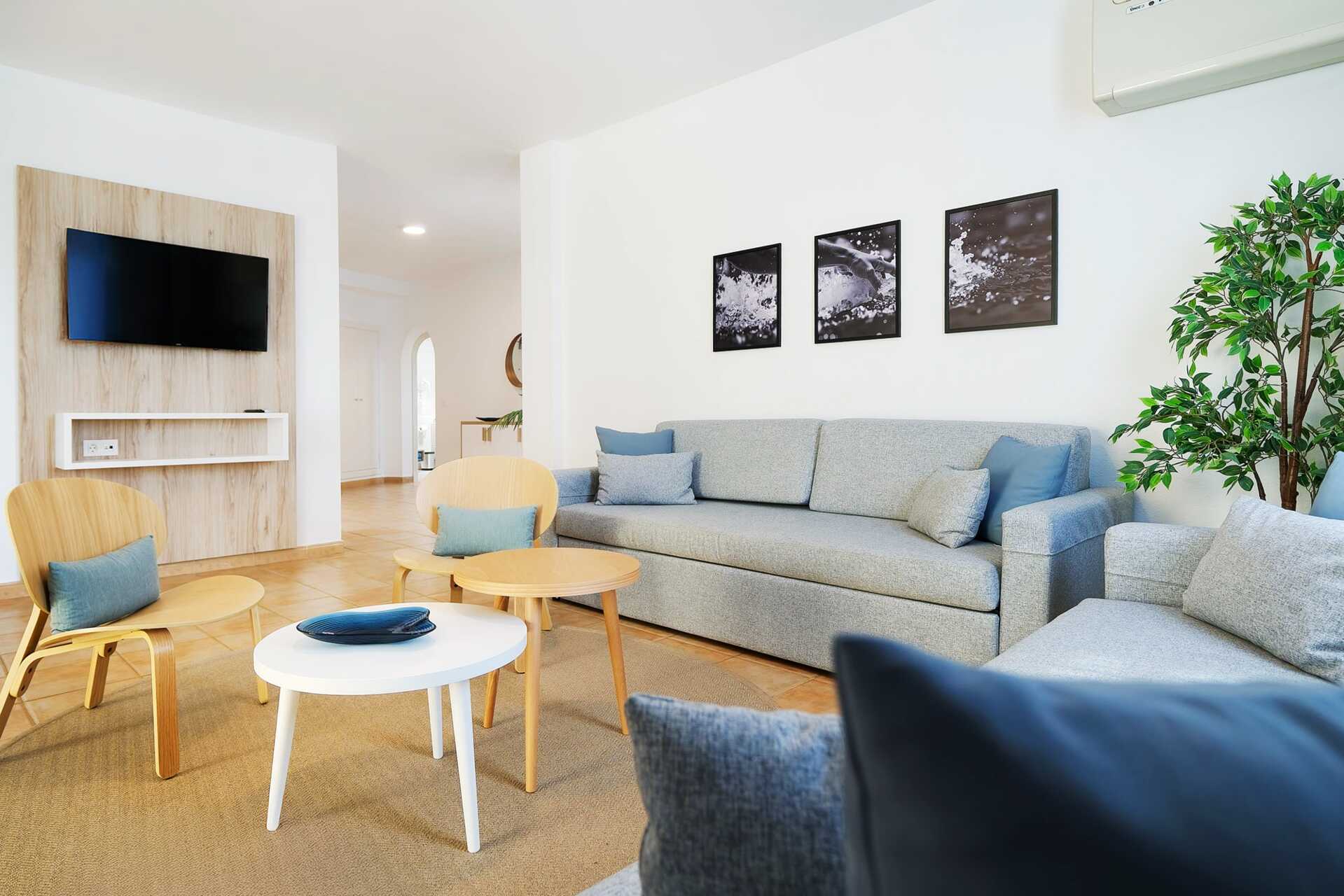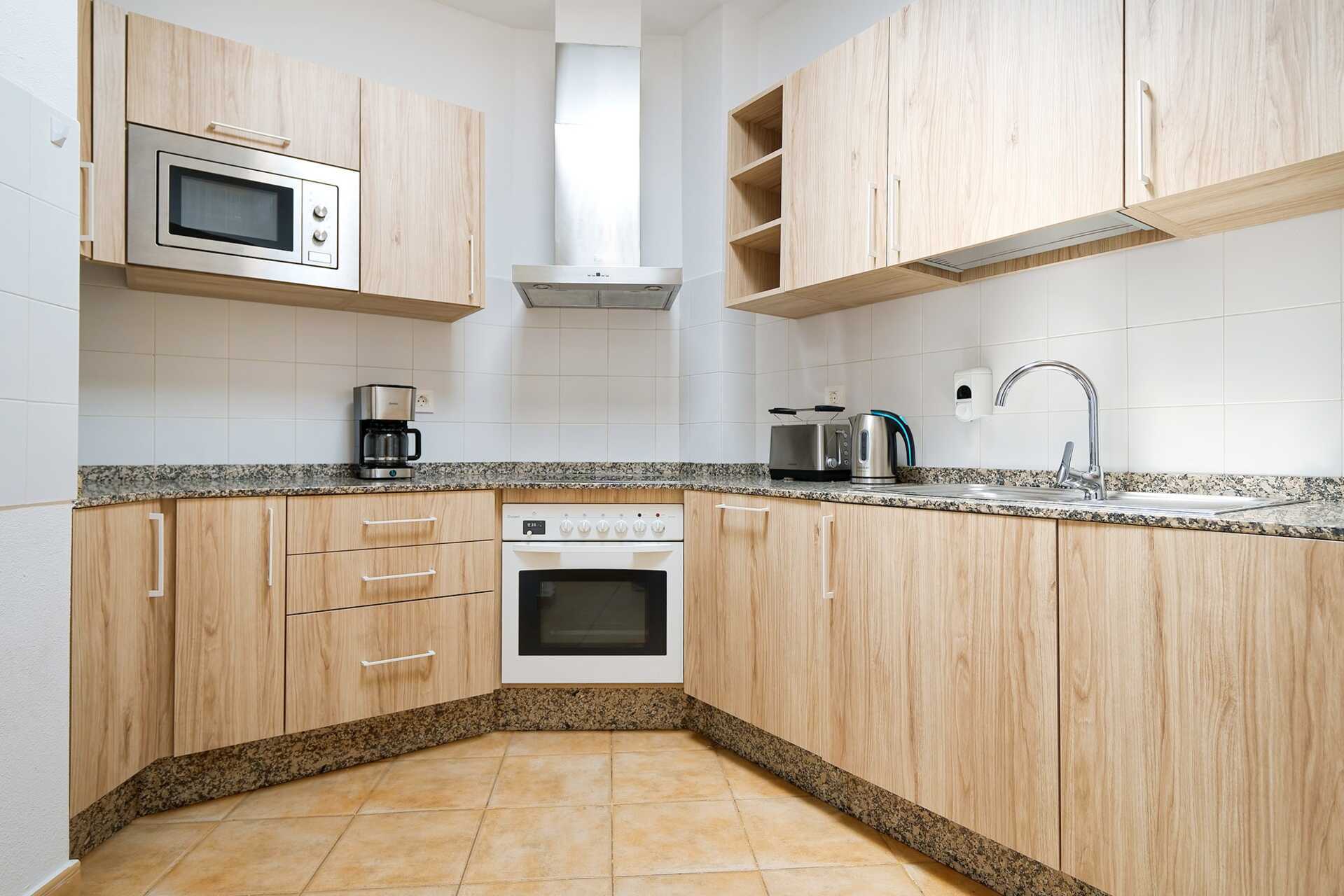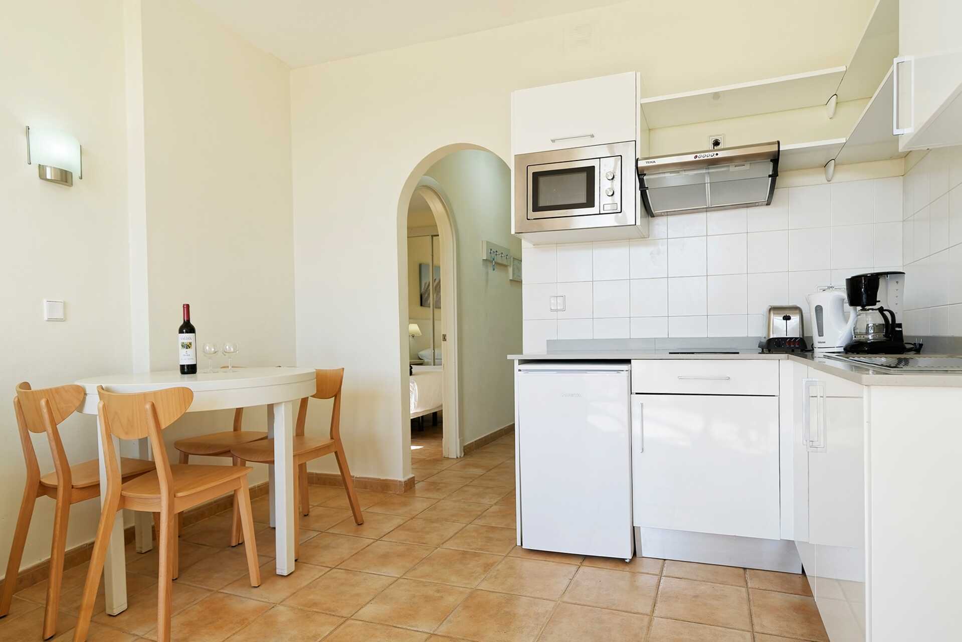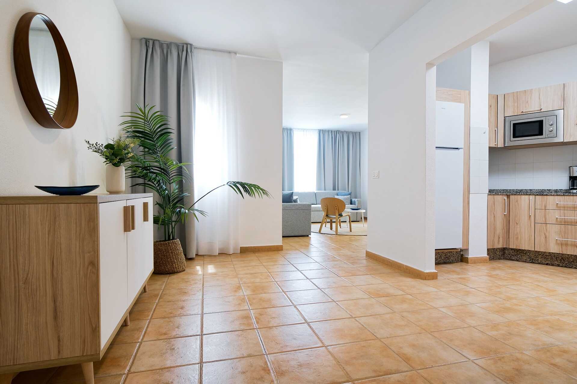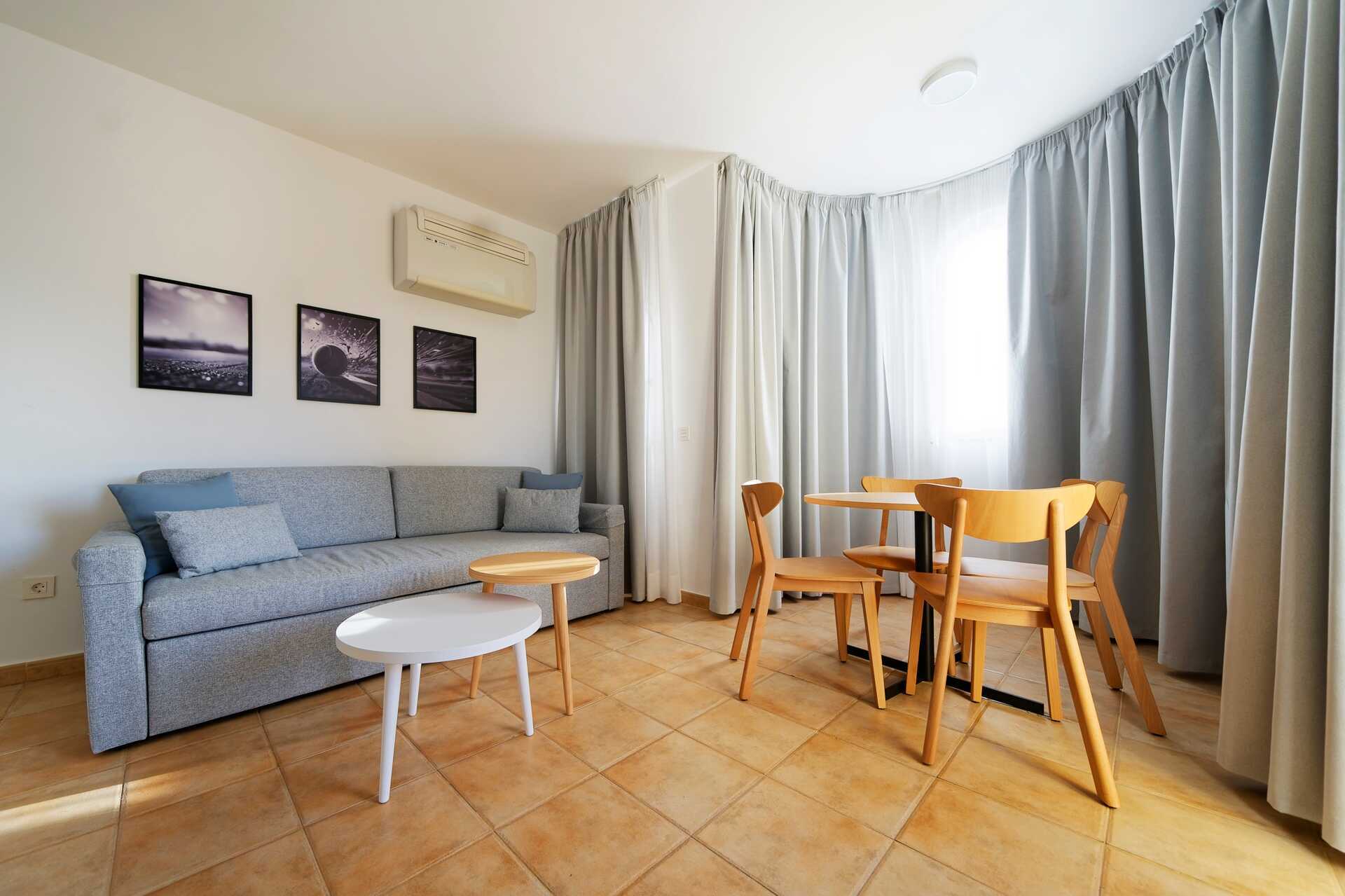 Treromsleilighet med balkong, noen med bassengutsikt, alternativt stor balkong. To soverom og stue med minikjøkken. To enkeltsenger i hvert soverom. Mulig med ekstrasenger i sovesofa og feltseng. Minikjøkken med kokeplater, kjøleskap, kaffetrakter, brødrister, mikrobølgeovn og enkelt kjøkkenutstyr. Wifi, luftkondisjonering og safe inkludert. Smart-TV. Hårføner. Baderom med dusj og wc. Rengjøring 5 ganger/uke (ingen rengjøring onsdager og søndager).