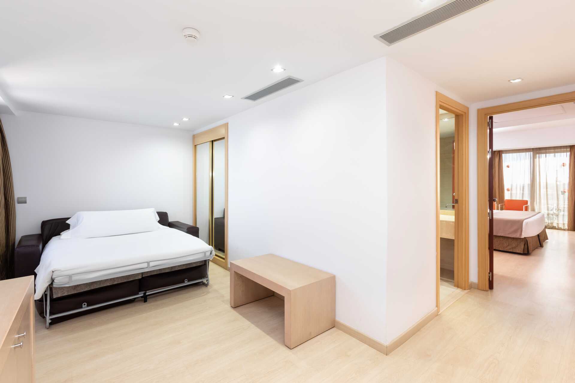 Superiorrom med balkong. Rommet består av et soverom med en dobbeltseng eller to enkeltsenger og stue med ekstrasenger i sovesofa. Luftkondisjonering, safe og wifi inkludert. Kjøleskap. TV. Hårføner. Bad med badekar og separat wc. Rengjøring 7 ggr/uke.