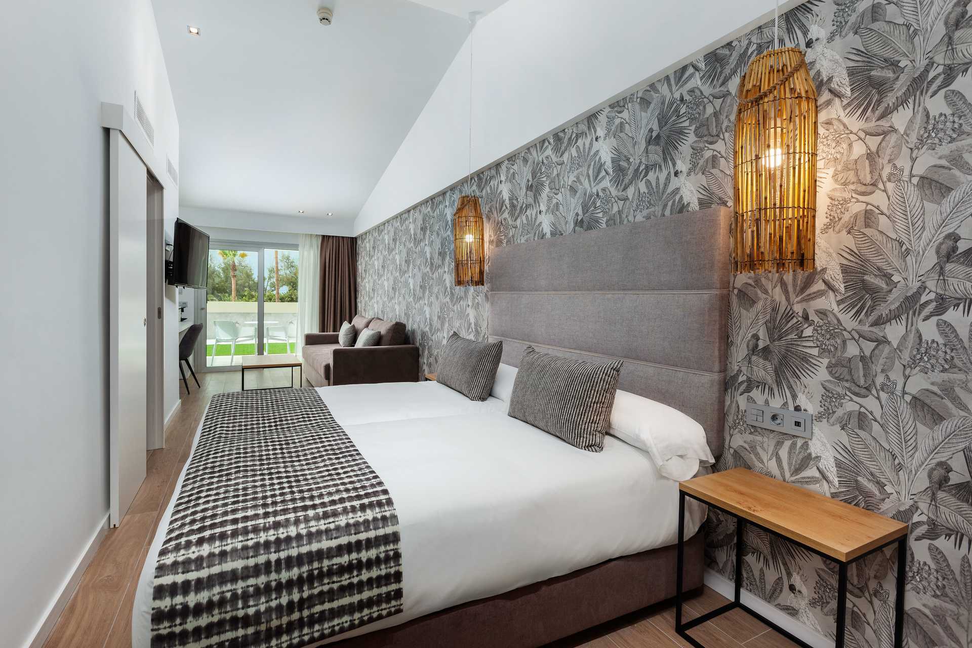 Juniorsuite med markterrasse med stoler og bord samt utsikt mot bassenget. En dobbeltseng eller to enkeltsenger. Mulig med ekstraseng i sovesofa. Wifi og luftkondisjonering inkludert. Safe mot avgift. Minibar mot avgift. Nespresso kaffemaskin. TV. Hårføner. Dusj og wc. Rengjøring 7 ggr/uke. Barn under 2 år regnes inn i maksantallet i rommet.