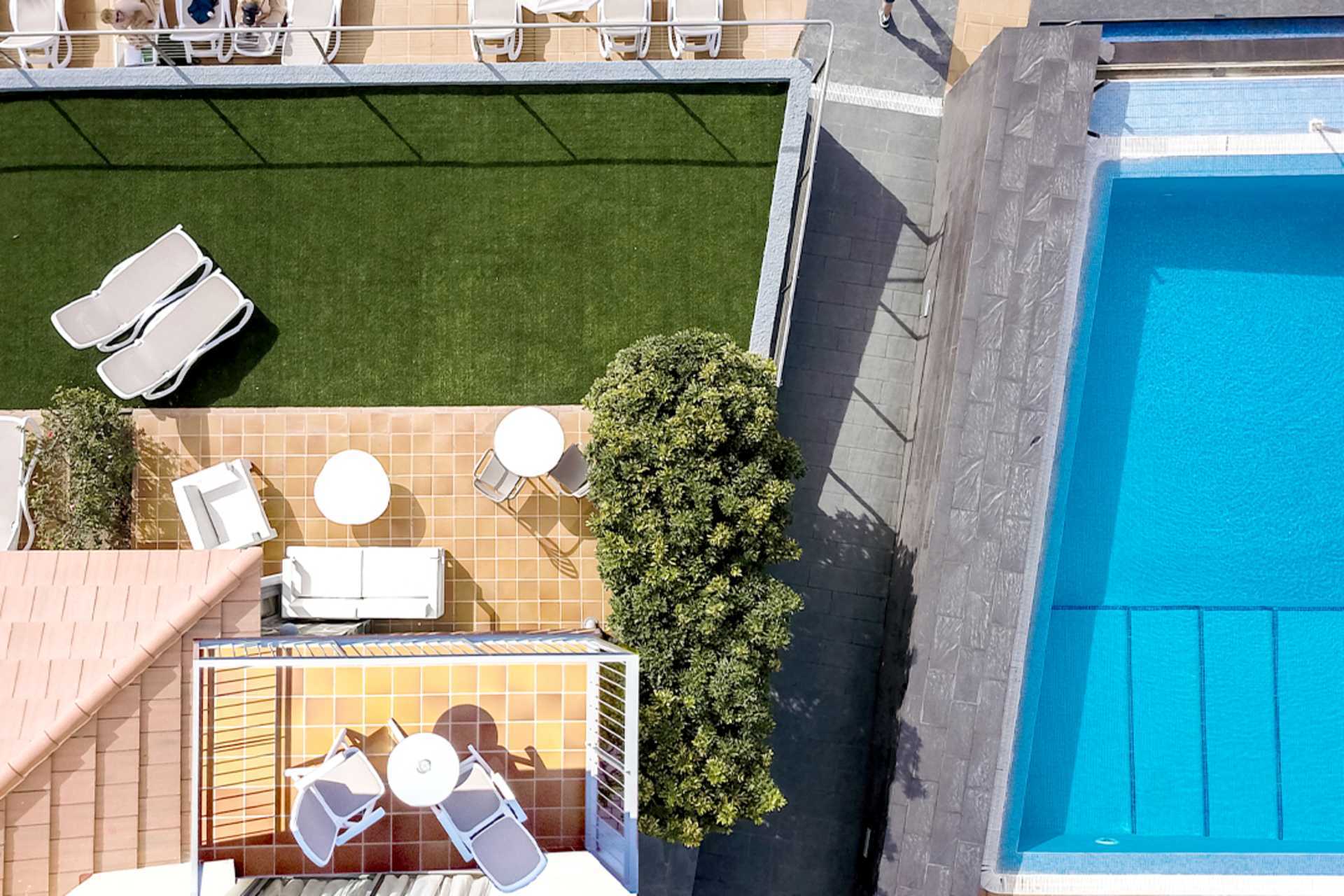 Toromsleilighet superior med markterrasse. På terrassen er det solsenger, sofa, lenestol samt stoler og bord. Et soverom og stue med minikjøkken. To enkeltsenger. Mulig med ekstrasenger i sovesofa. Ekstra puter og bassenghåndklær samt musserende vin og nøtter er i leiligheten ved ankomst. Minikjøkken med kjøleskap, kokeplater, kaffetrakter, brødrister og enkelt kjøkkenutstyr. Wifi inkludert. luftkondisjonering på soverommet inkludert - fjernkontroll mot depositum. Safe mot avgift. TV, fjernkontroll mot depositum. Hårføner. Dusj og wc. Rengjøring 5 ggr/uke.