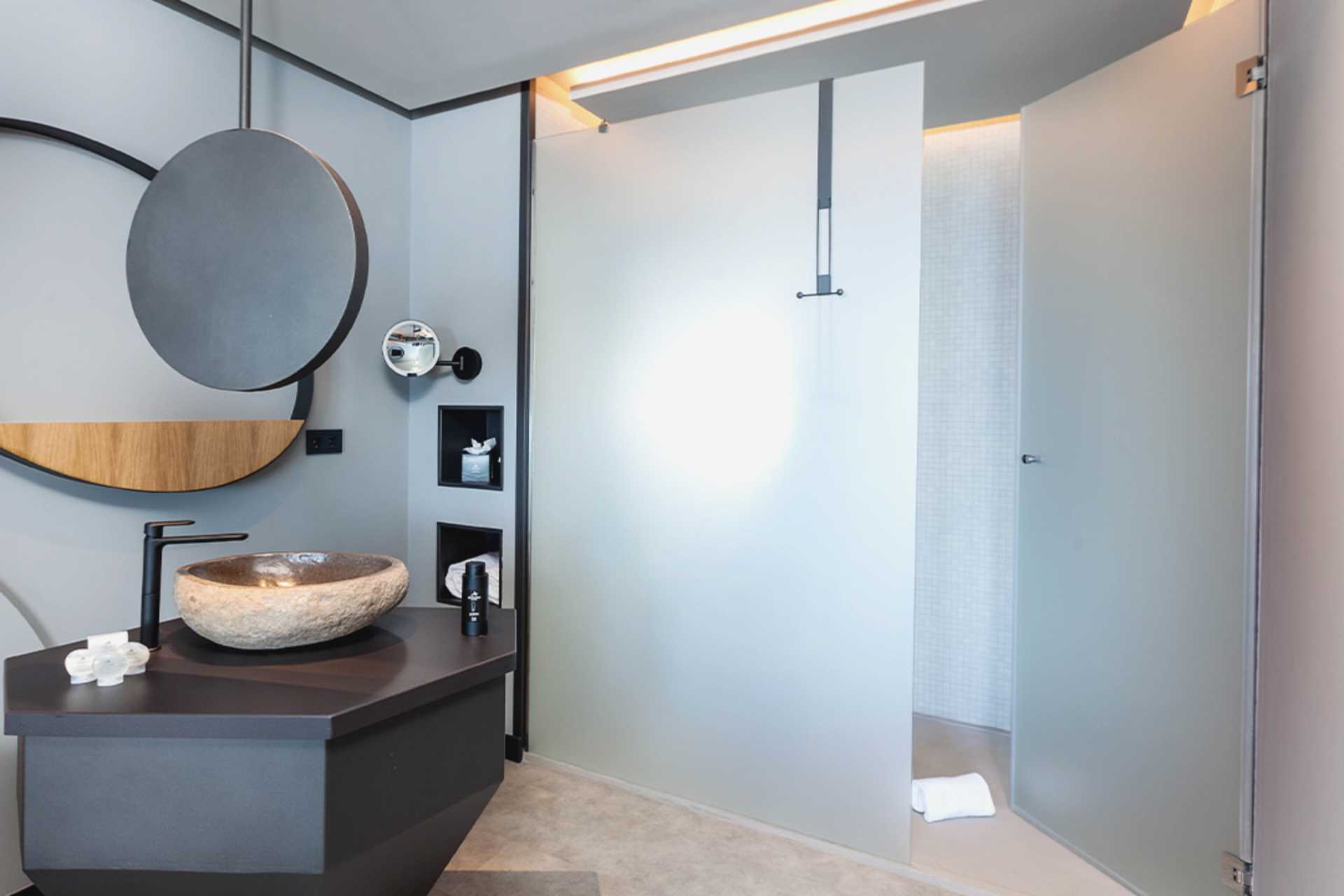 Superiorrom med balkong, noen med begrenset havutsikt. En dobbeltseng. Wifi, luftkondisjonering og safe inkludert. Sofa. Minibar. Nespresso kaffemaskin, kapsler inkludert. Vannkoker. TV. Badekåper og tøfler Hårføner. Bad, delvis åpent mot rommet, men med dusj og wc bak frostede glassdører. Rengjøring 7 ggr/uke.