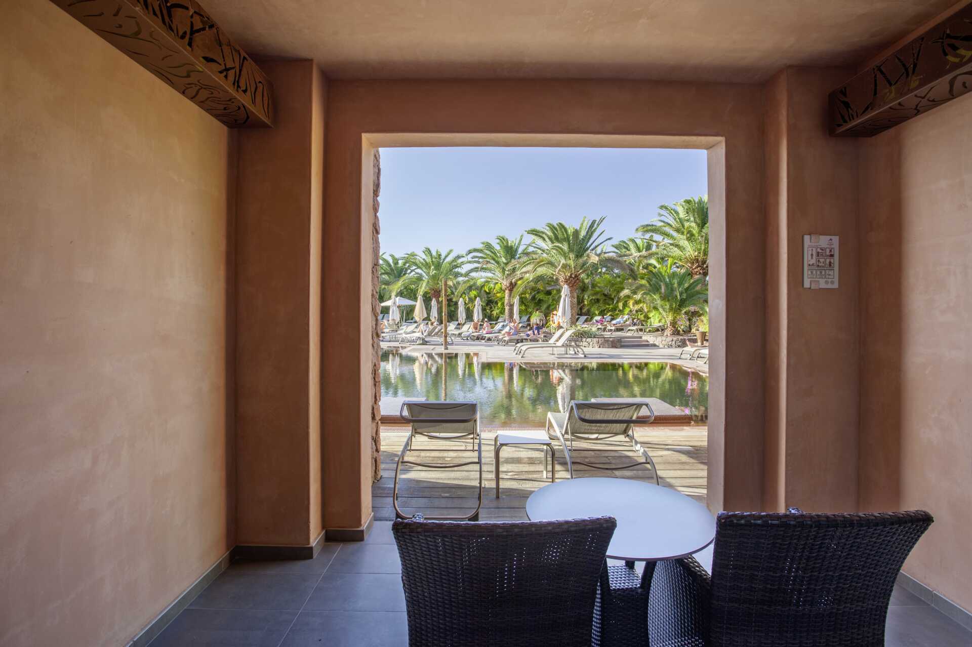 Dobbeltrom med uteplass og eget basseng. På uteplassen er det bord og stoler samt to solsenger. Stige ned i bassenget. En dobbeltseng. Mulig med ekstrasenger i sovesofa. Wifi, safe og luftkondisjonering inkludert. Minibar. Vannkoker. Nespresso kaffemaskin. TV. Badekåper og tøfler. Hårføner. Badekar og wc. Rengjøring 7 ggr/uke. Barn under 2 år regnes inn i maksantallet i rommet.