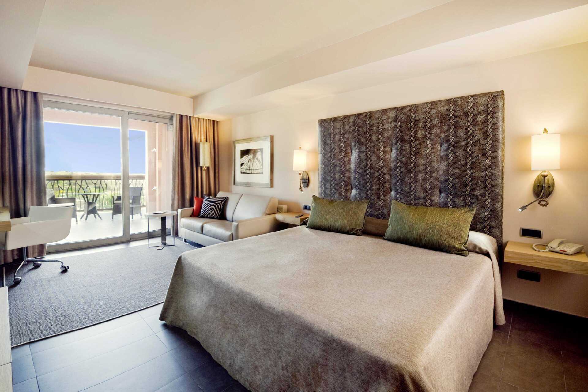 Dobbeltrom med balkong eller terrasse. Noen dobbeltrom ligger i de øverste etasjene med utsikt over bassenget, sanddynene og havet i det fjerne. To enkeltsenger. Mulig med ekstrasenger i sovesofa. Wifi og luftkondisjonering inkludert. Safe mot avgift. Minibar. TV. Hårføner. Badekåper og tøfler Bad med dusj og badekar og wc. Rengjøring 7 ggr/uke. Barn under 2 år regnes inn i maksantallet i rommet.
