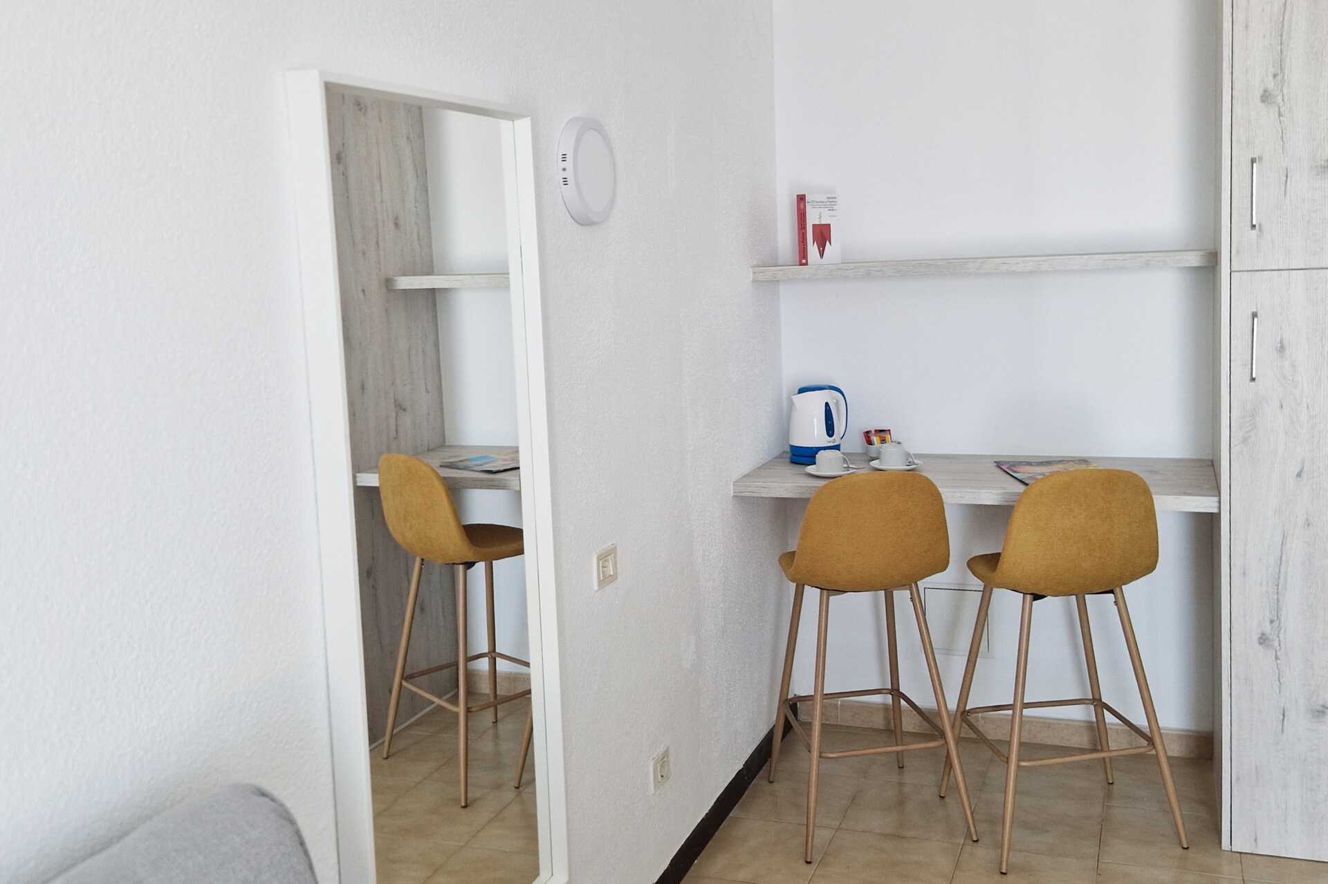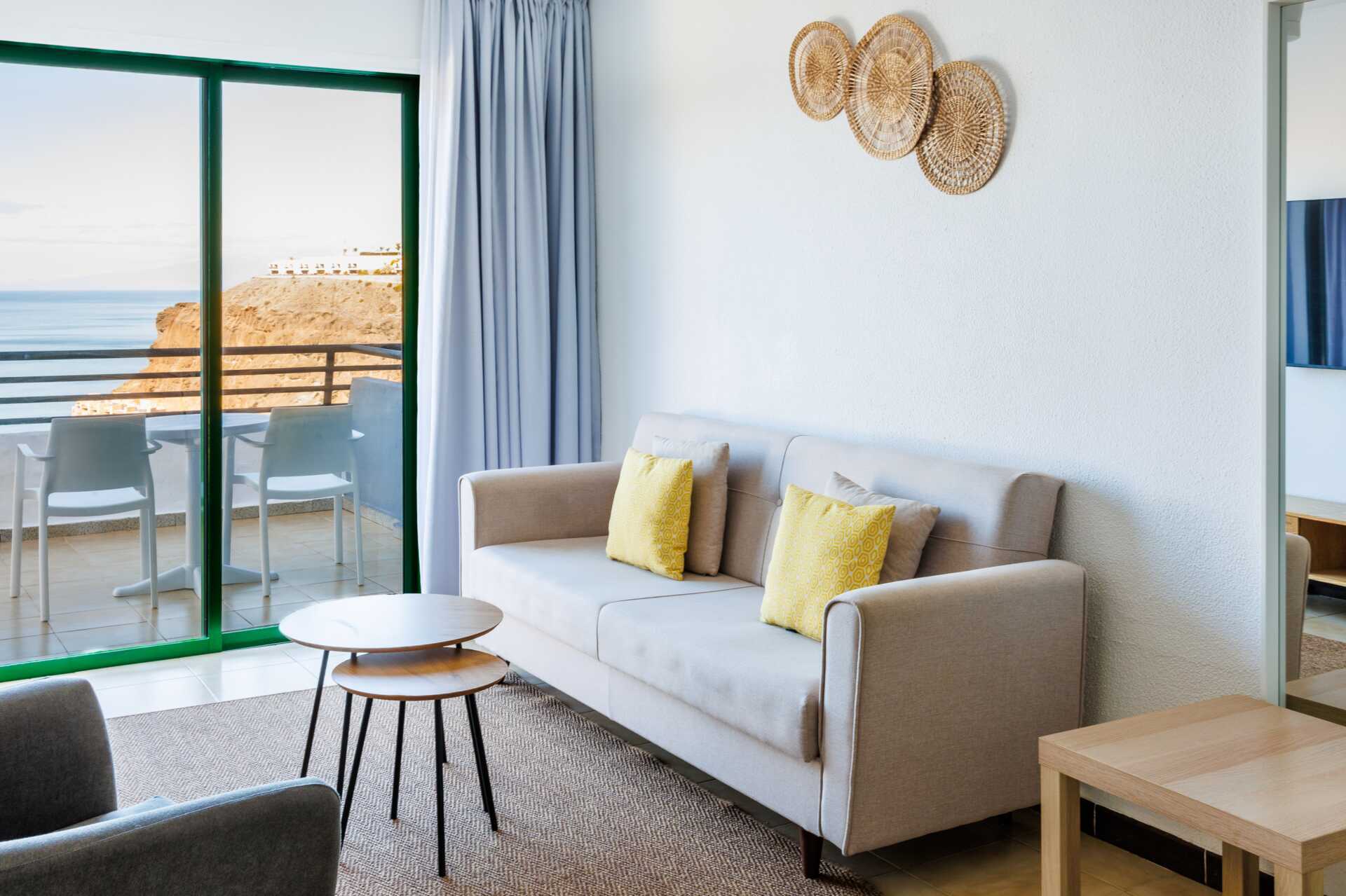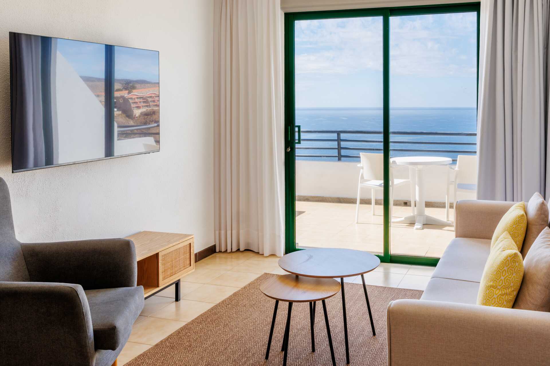 Juniorsuite med balkong og havutsikt. Juniorsuiten består av et soverom og en stue. To enkeltsenger. Mulig med en ekstraseng i sovesofa. Wifi er inkludert. Safe mot avgift. Takvifte. Kjøleskap. Vannkoker samt kaffe og te. TV. Hårføner. Bad med dusj og wc. Rengjøring 5 ggr/uke.