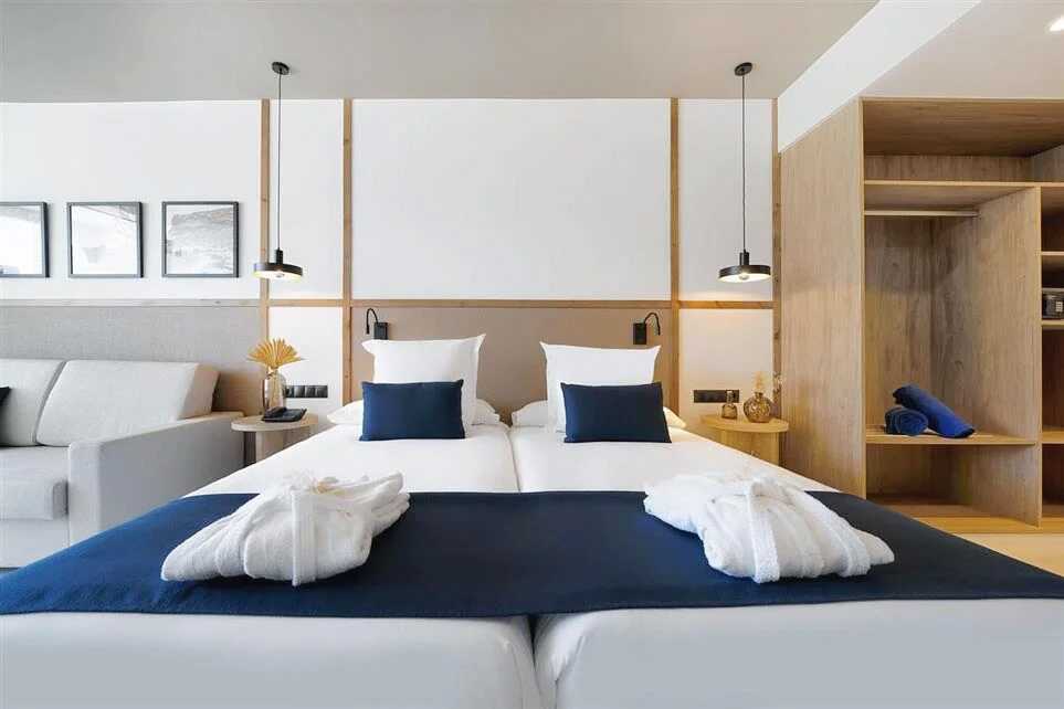 Juniorsuite med balkong og havutsikt. To enkeltsenger. Wifi, luftkondisjonering og safe inkludert. Lite kjøleskap. Nespresso kaffemaskin, kapsler mot avgift. Vannkoker samt kaffe og te. TV. Hårføner. Bad med dusj og wc. Rengjøring 7 ggr/uke.