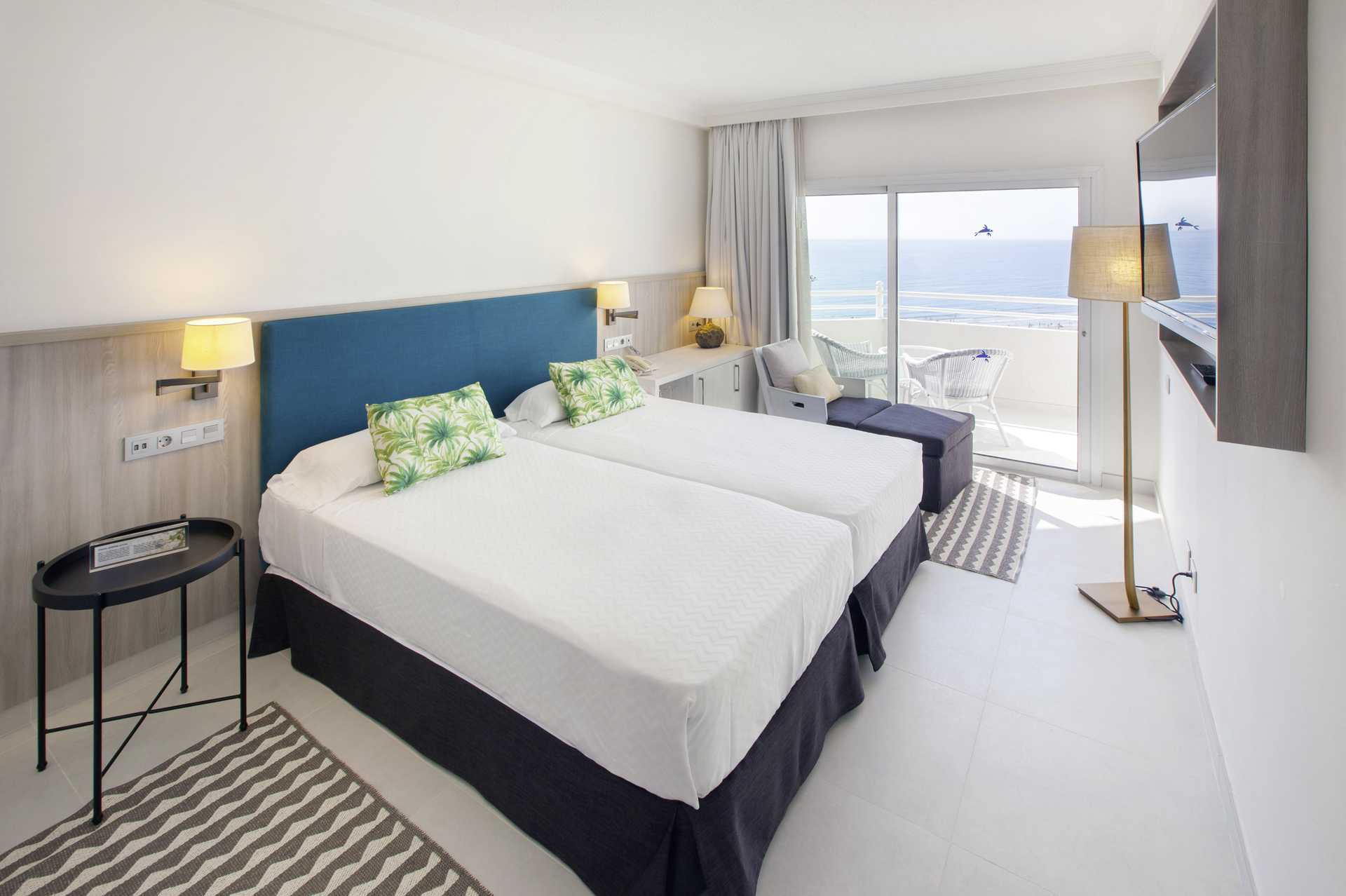 Deluxerom med balkong eller terrasse, eller med balkong og havutsikt. Rommene ligger i hovedbygningen. To enkeltsenger. Wifi og luftkondisjonering inkludert. Safe mot avgift. Minibar. TV. Hårføner. Baderom med dusj og wc. Rengjøring 7 ggr/uke.