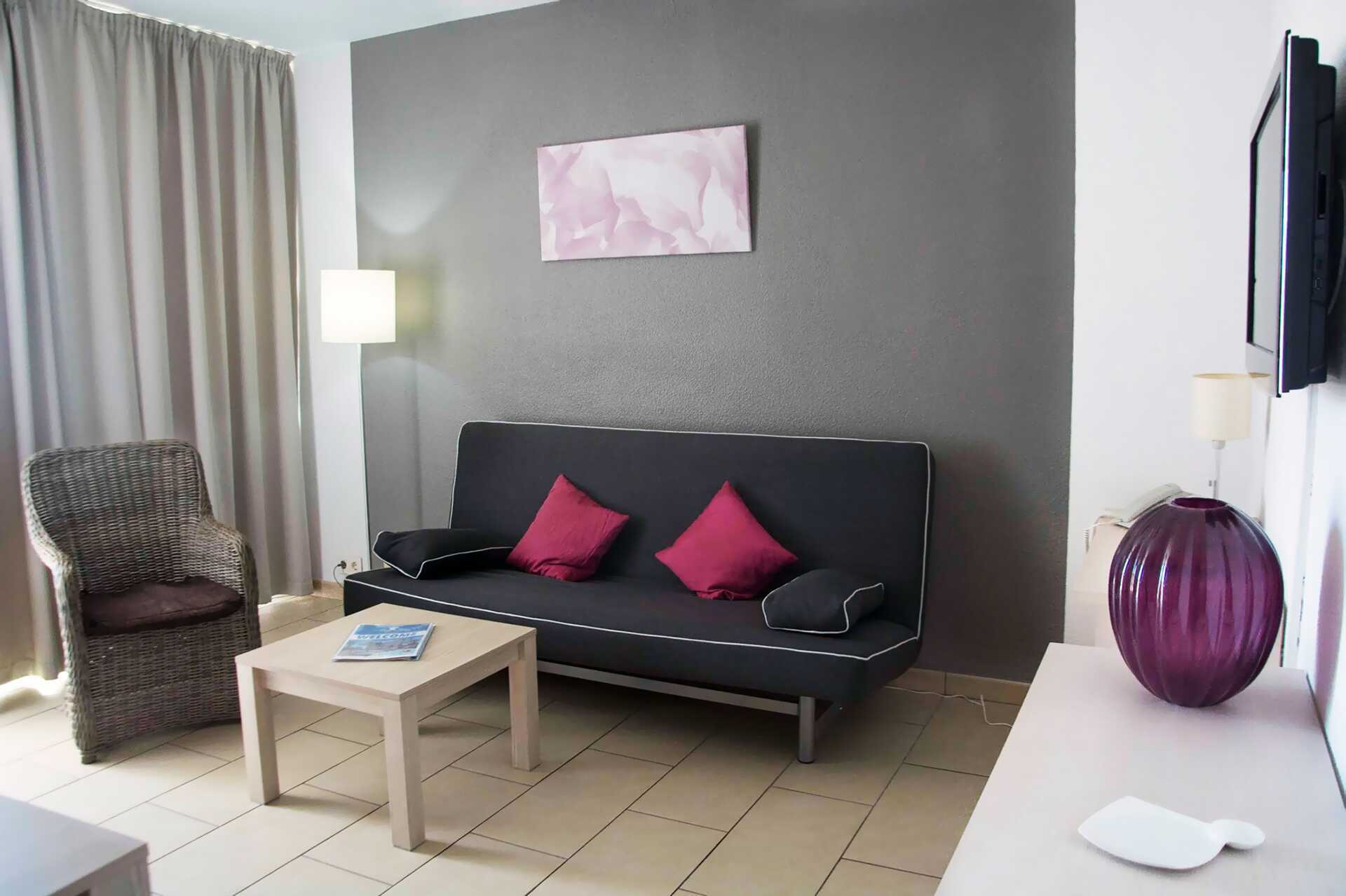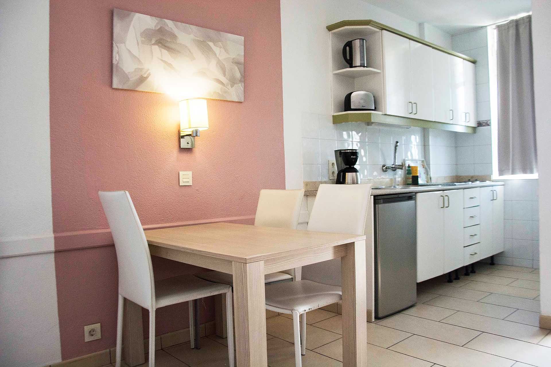 Toromsleilighet med balkong, eller balkong eller terrasse med bassengutsikt. Leilighetene ligger fra første til fjerde etasje. Et soverom og stue med minikjøkken. To enkeltsenger. Mulig med en ekstraseng i sovesofa. Minikjøkken med kjøleskap, kokeplater, kaffetrakter, vannkoker, brødrister og enkelt kjøkkenutstyr. Wifi og safe mot avgift. TV. Hårføner. Badekar eller dusj samt wc. Rengjøring 4 ggr/uke. I vintersesongen regnes barn under to år inn i det maksimale antallet personer i leiligheten.