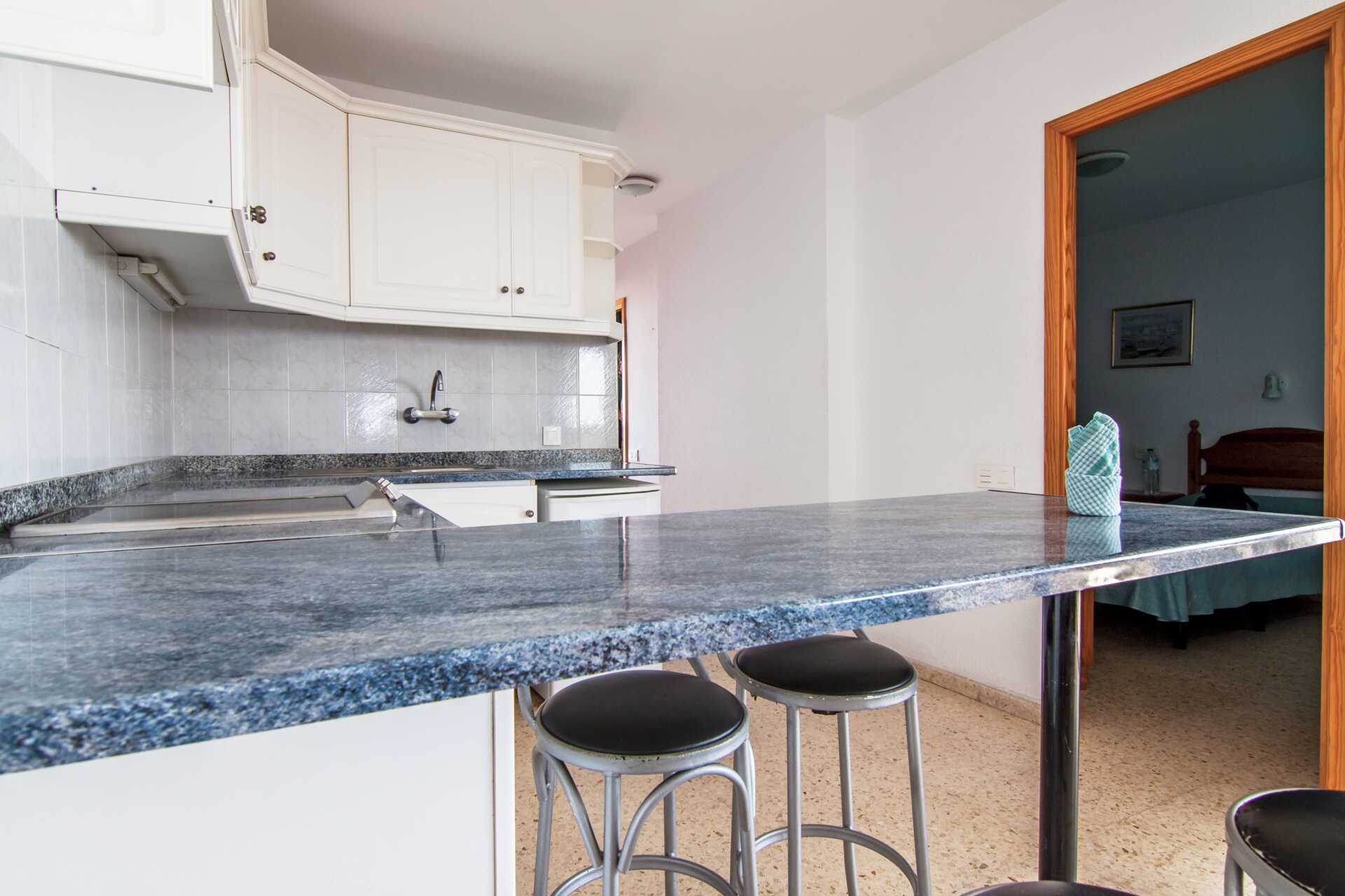 Toromsleilighet med balkong. Soverom og kombinert stue med minikjøkken. To enkeltsenger. Mulig med en ekstraseng i sovesofa. Minikjøkken med kokeplater, kjøleskap, brødrister og enkelt kjøkkenutstyr. Wifi og depositum mot avgift. TV mot avgift. Badekar eller dusj samt wc. Rengjøring 5 ggr/uke.